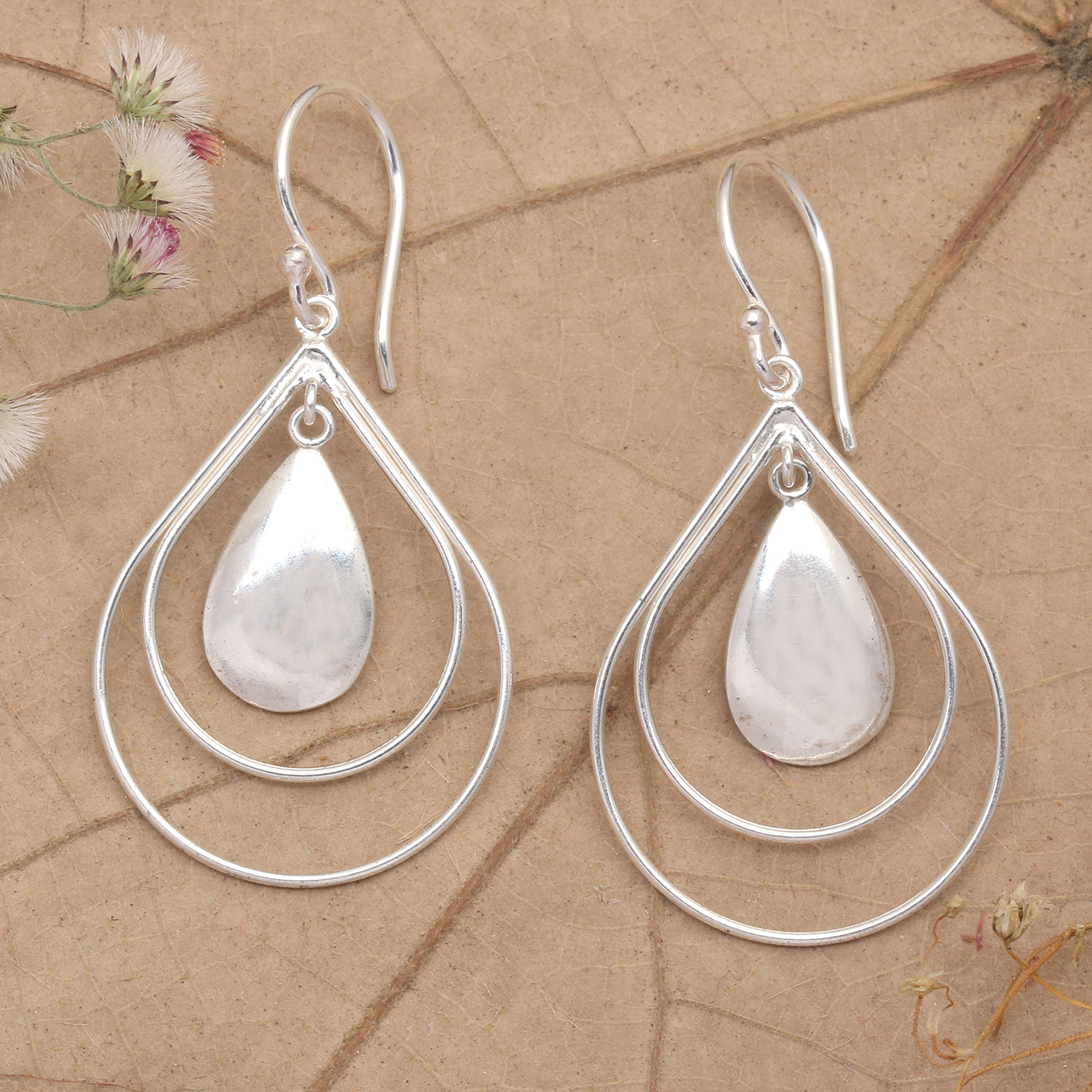 Polished Drop-Shaped Sterling Silver Dangle Earrings, 'Our Dance'