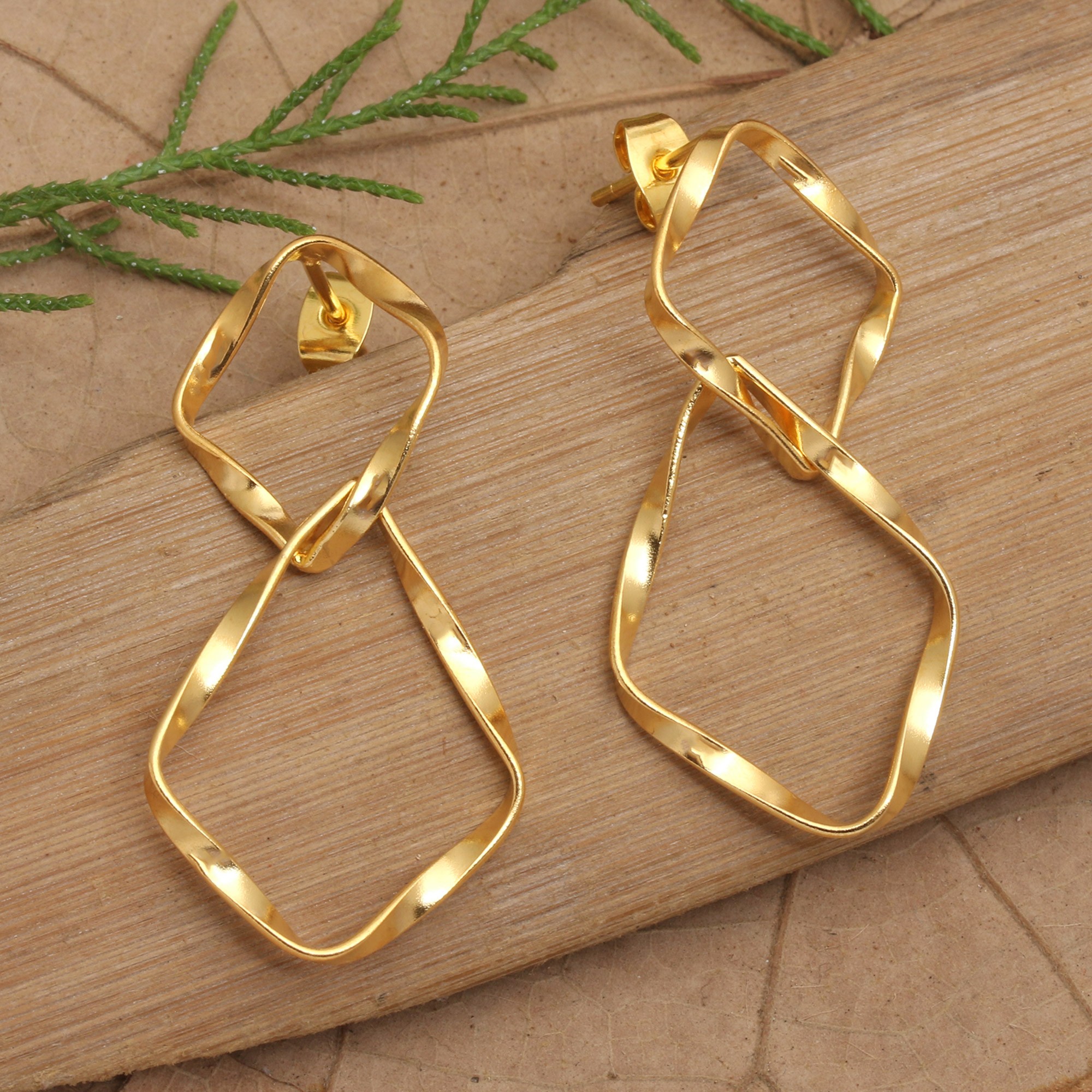 Polished Modern 18k Gold-Plated Dangle Earrings from Bali, 'Twists of Triumph'
