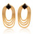 Let the echo of a magnificent style resonate in every outing with these brass drop earrings by Ritu Malpani of India. The designer follows an avant-garde theme when creating the oval pendants, whose polished finish is crowned with black onyx gems as a symbol of puissance.