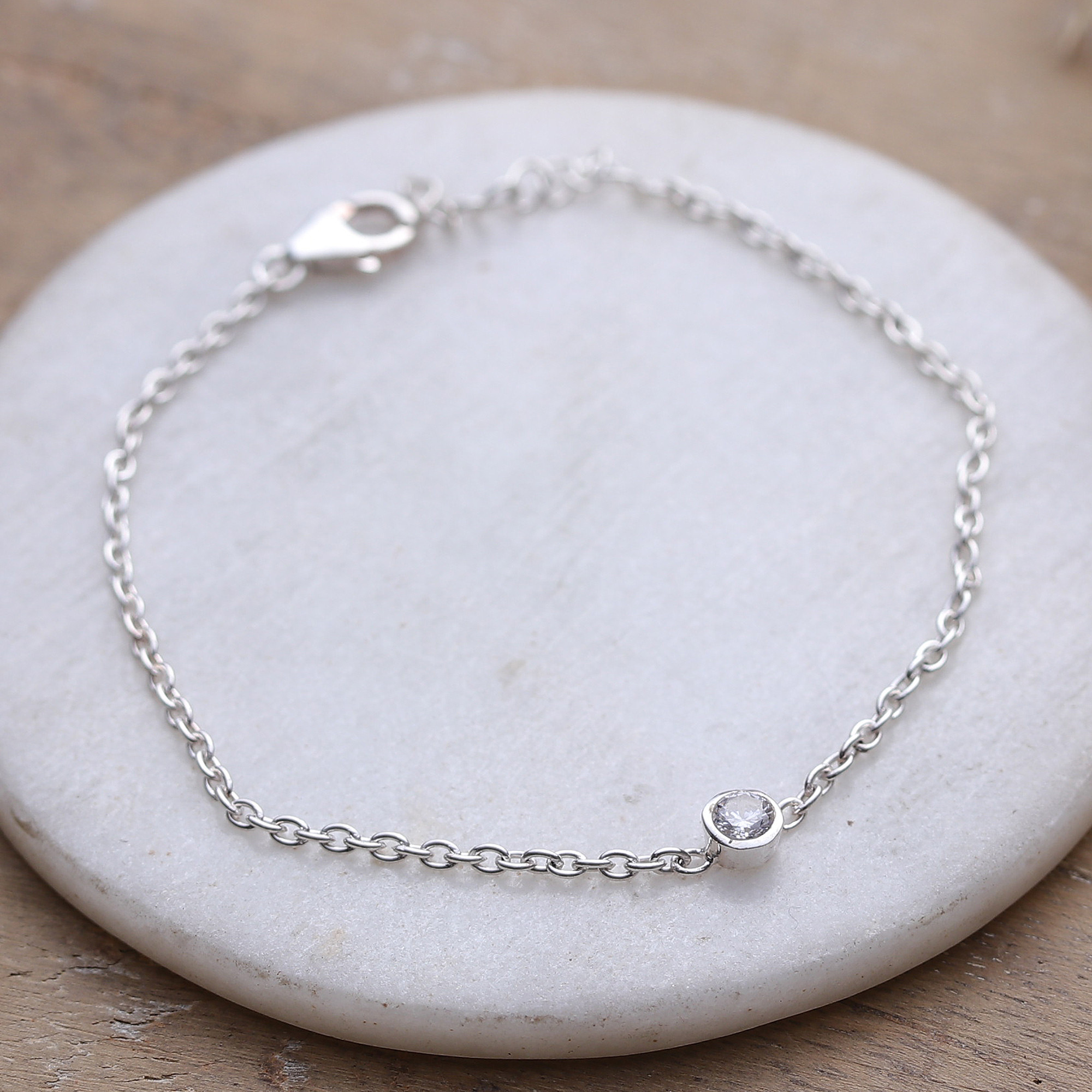 Polished Sterling Silver and Cubic Zirconia Pendant Bracelet, 'Sparkling Dot'