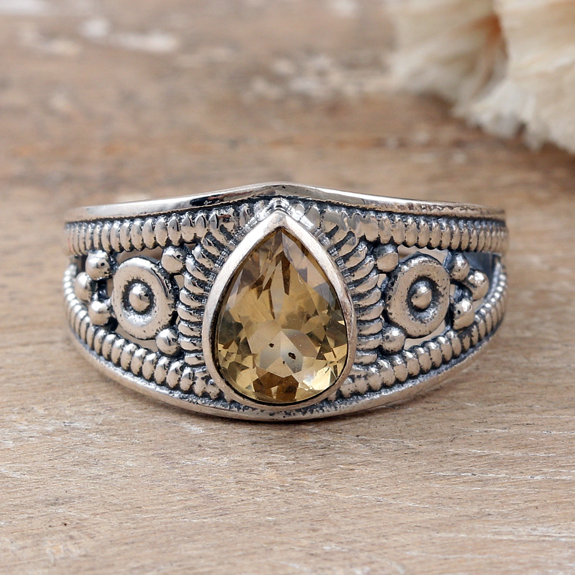 Polished Sterling Silver Cocktail Ring with a Citrine Gem, 'Success Drop'