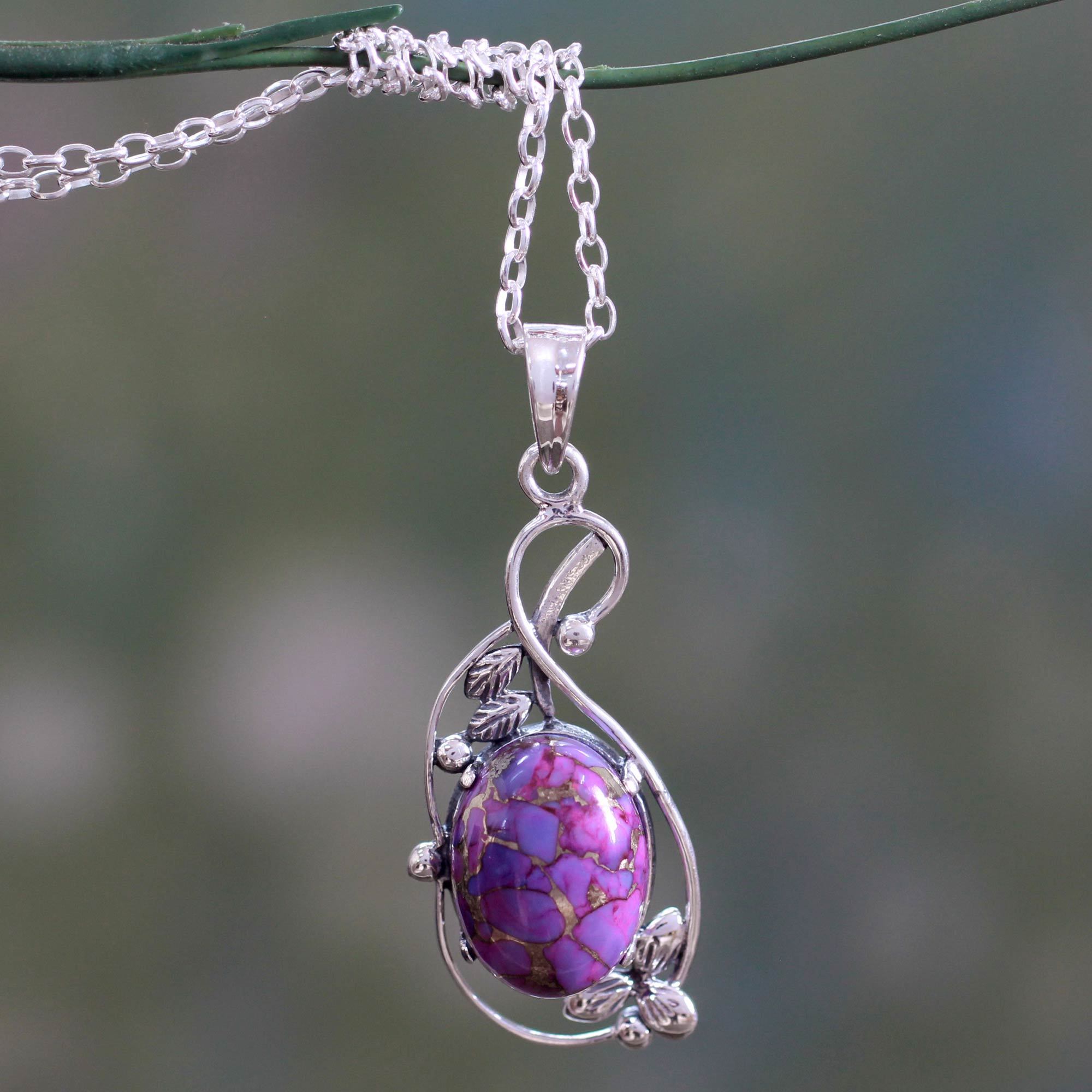Purple Composite Turquoise Silver Necklace from India, 'Splendor'