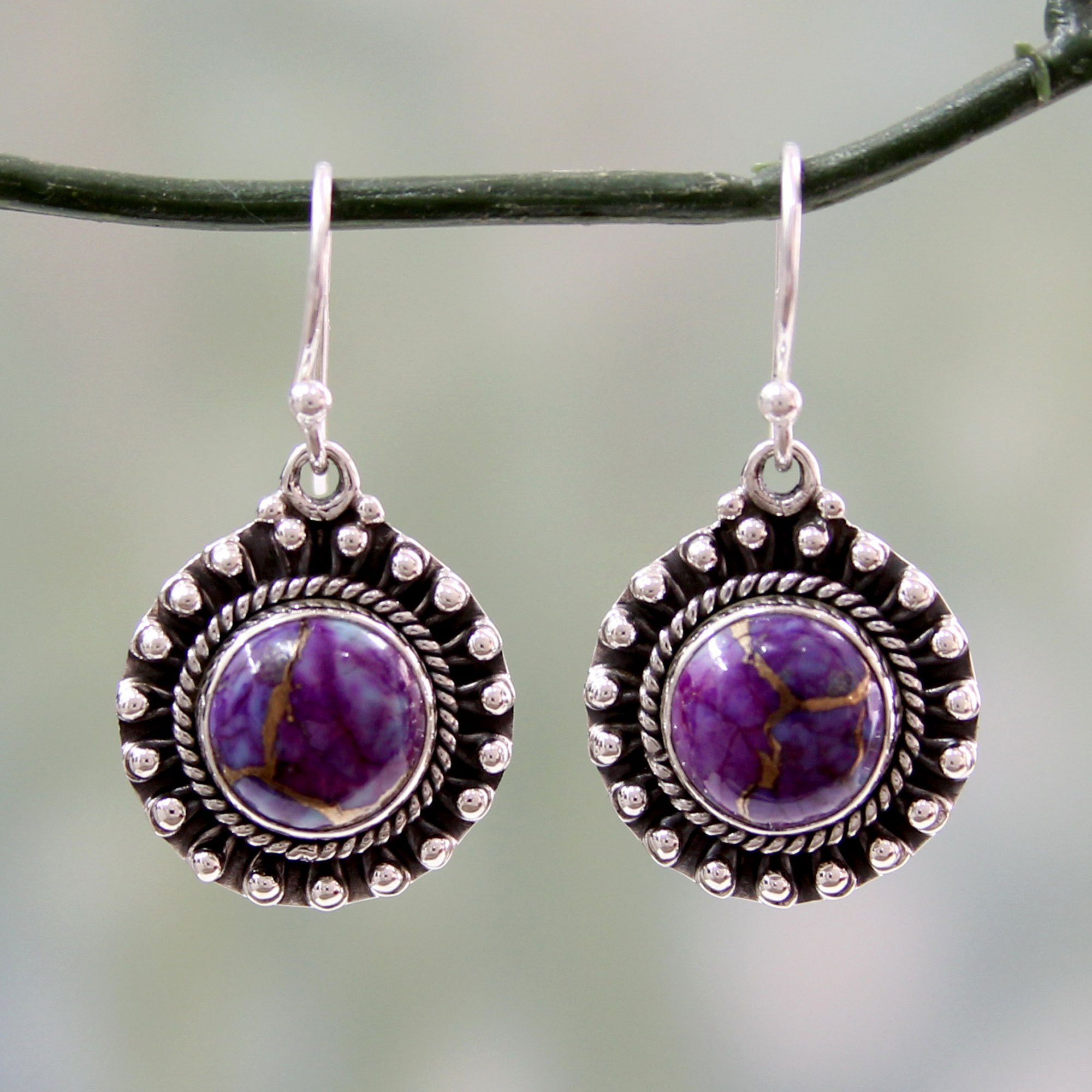 Purple Turquoise and Sterling Silver Earrings from India, 'Purple Fire'