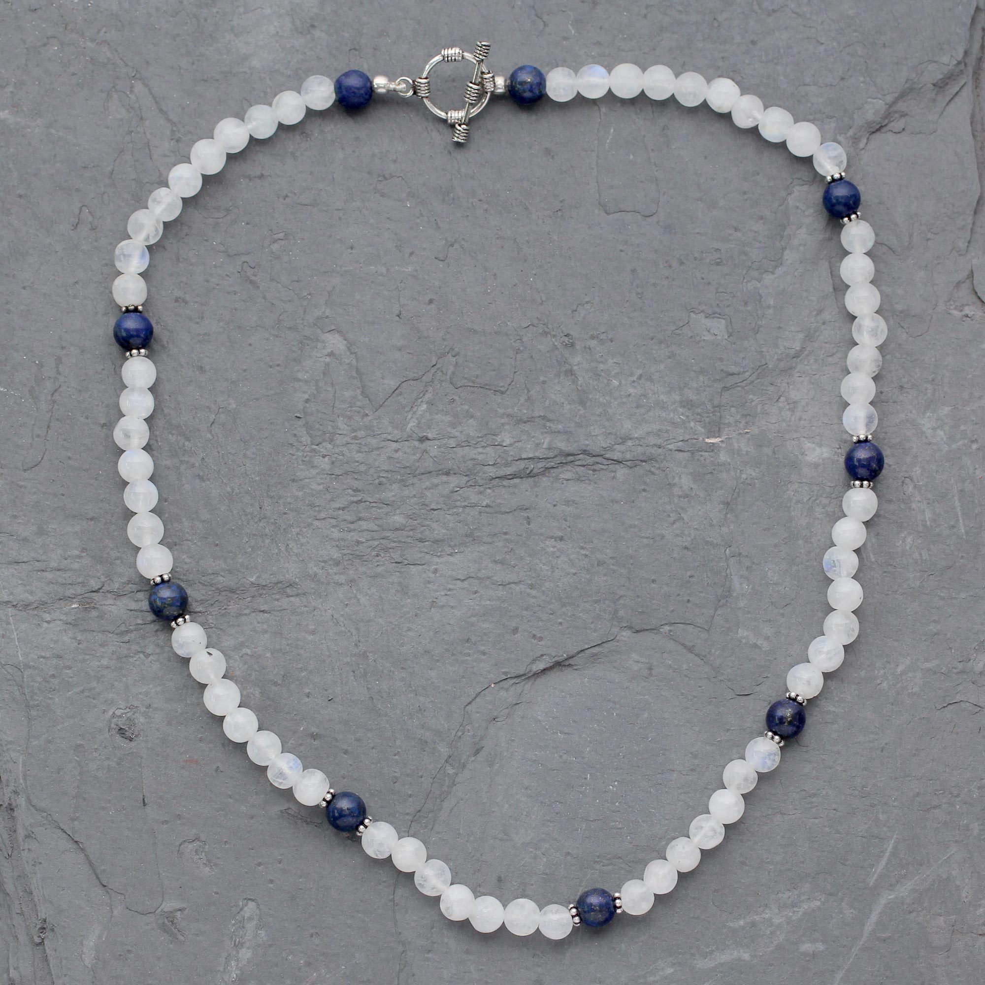 Rainbow Moonstone and Lapis Lazuli Beaded Necklace, 'Jaipur Skies'