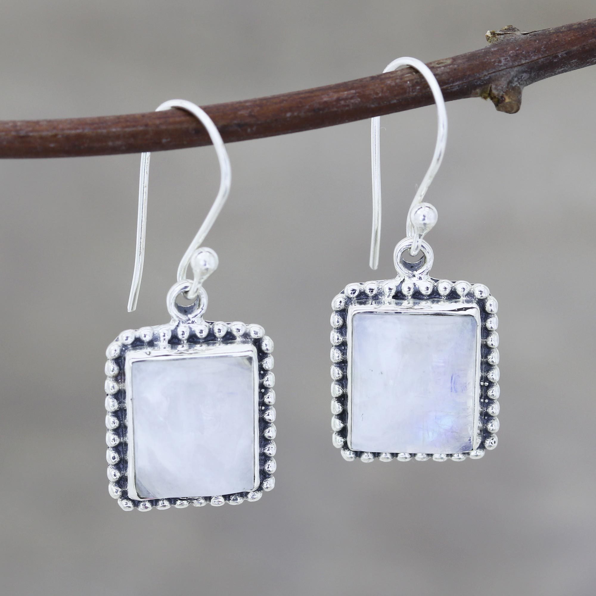 Rainbow Moonstone Dangle Earrings Crafted in India, 'Good Will Spirit'