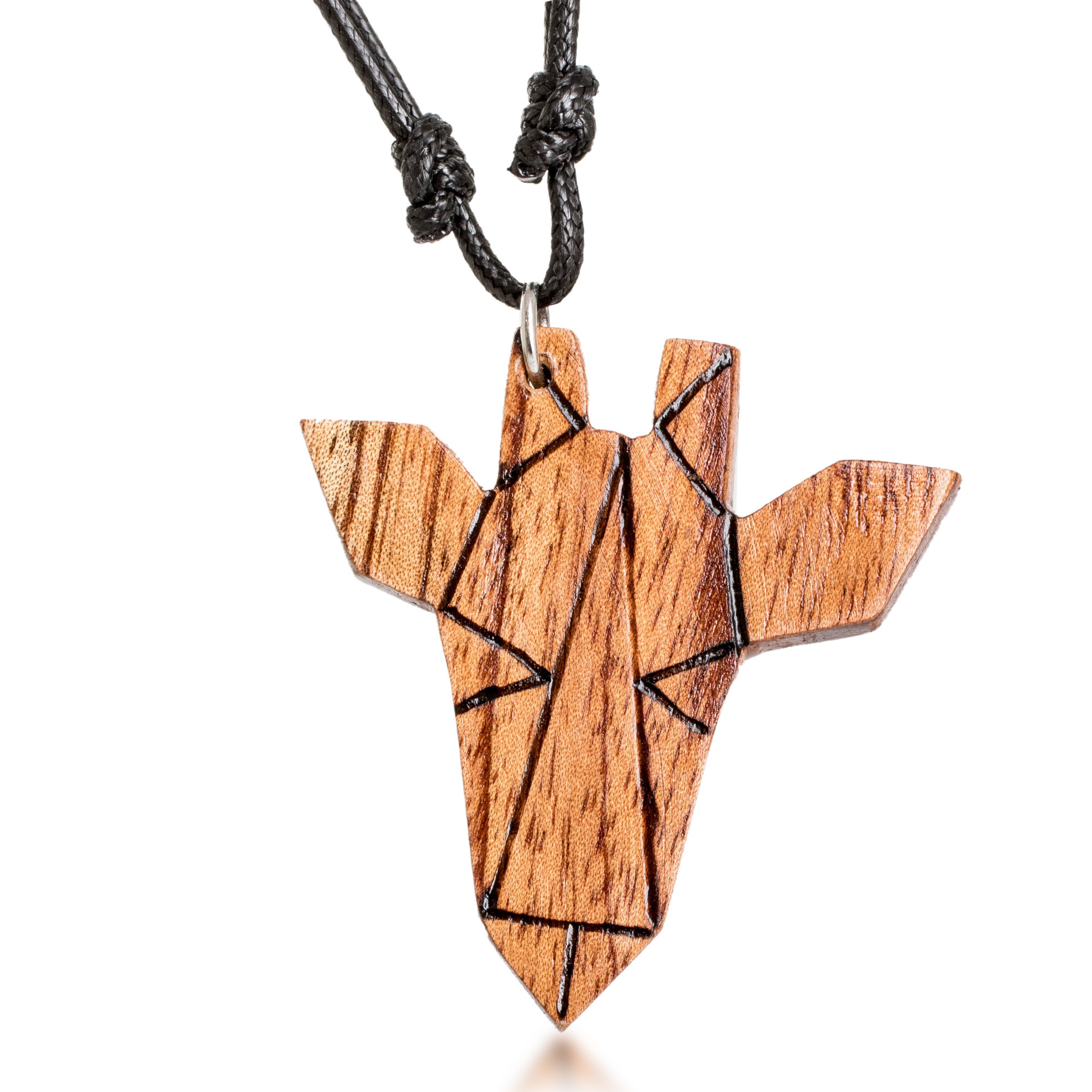 Reclaimed Wood Pendant Necklace with Giraffe Head Motif, 'Wise Friend'