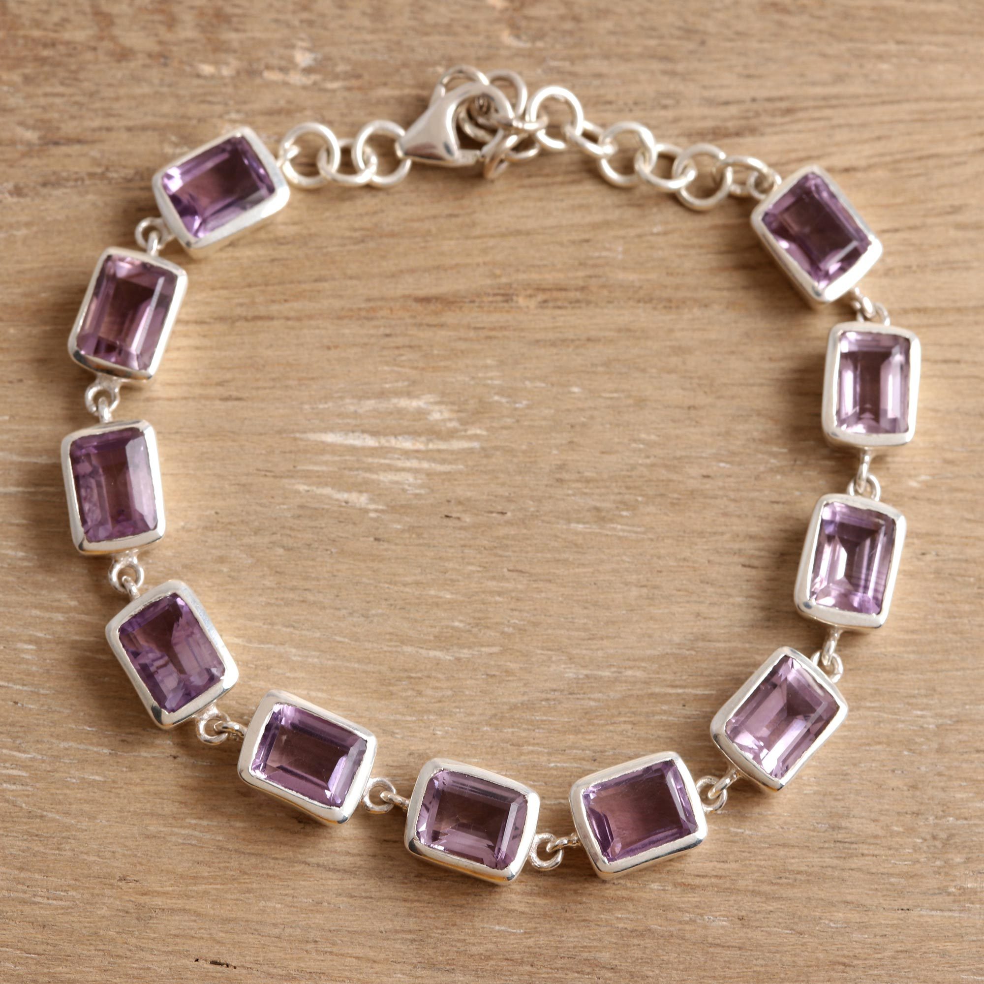 Rectangular Amethyst Link Bracelet from India, 'Royal Rectangles'