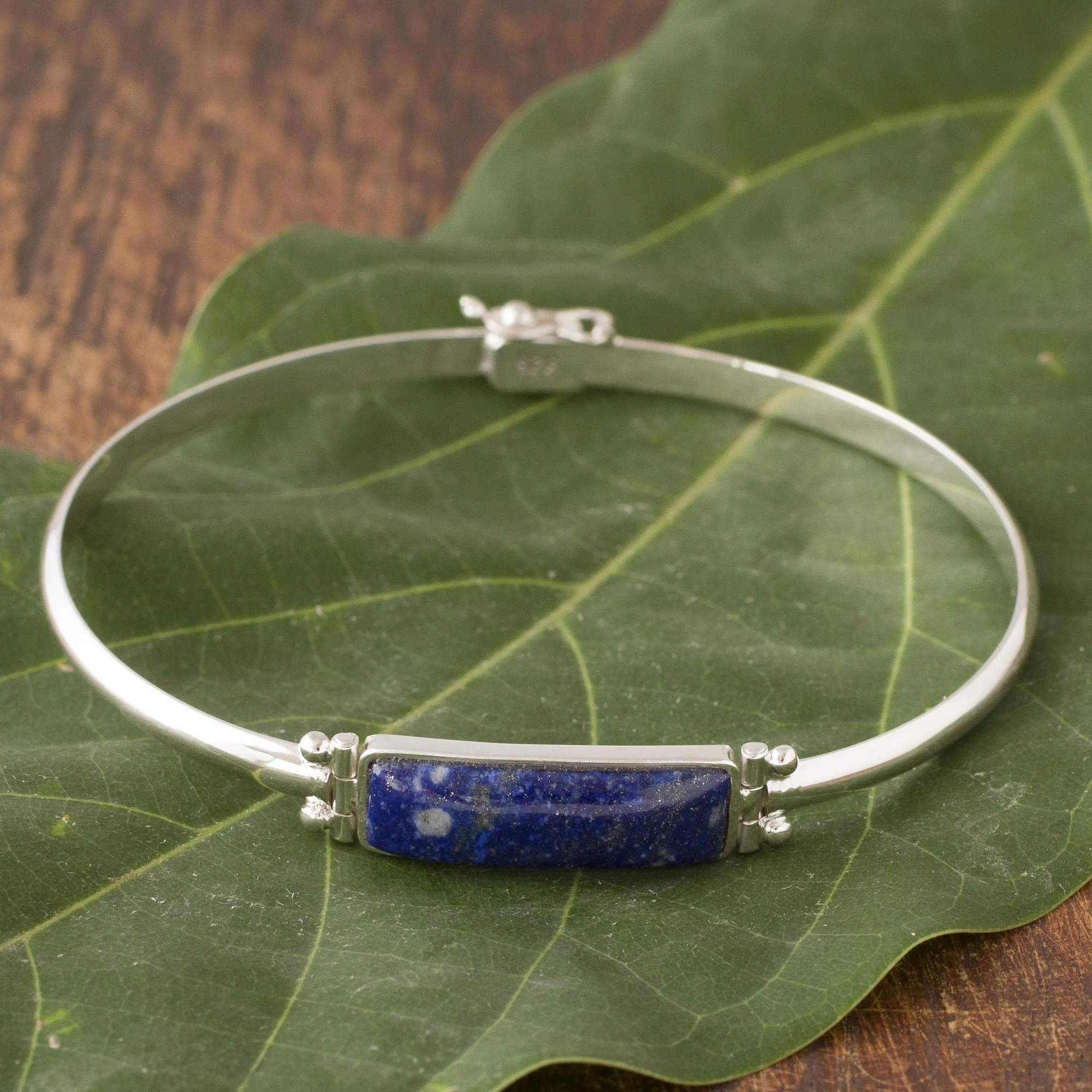 A rectangle of blue lapis lazuli centers this bracelet from the Andean highlands. Meticulously crafted by Tiberio Gonzales, the bangle encircles the wrist with sleek sterling silver in a contemporary design.