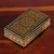 Luminous foliage emerges from darkness in this captivating decorative box where traditional papier mache techniques create contemporary magic. The golden-hued leaf patterns flow beautifully across the black surface, each detail lovingly rendered by Indian craftsman Fida Hussain. Constructed with weeping willow wood for lasting strength and lined with elegant faux velvet, this box transforms storage into a celebration of natural artistry.