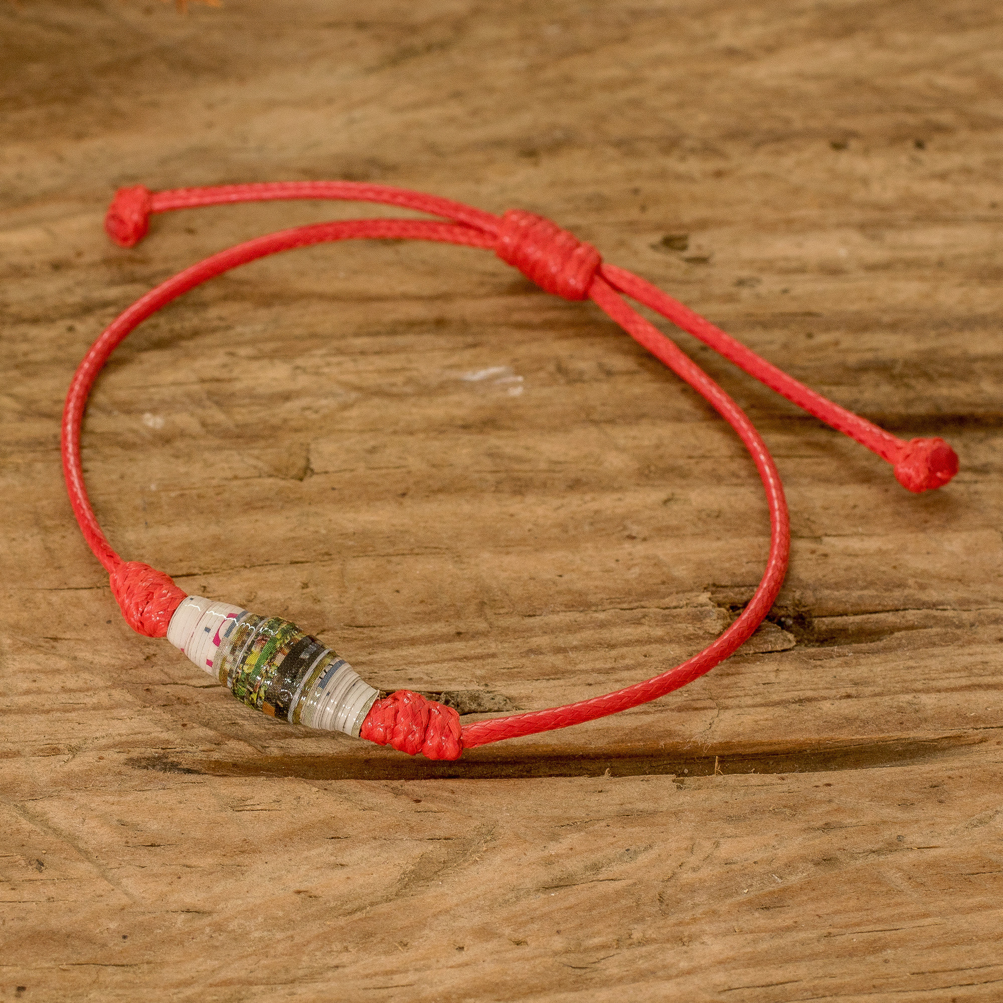 Red Recycled Paper Pendant Bracelet with Adjustable Cord, 'Earth's Riches in Red'