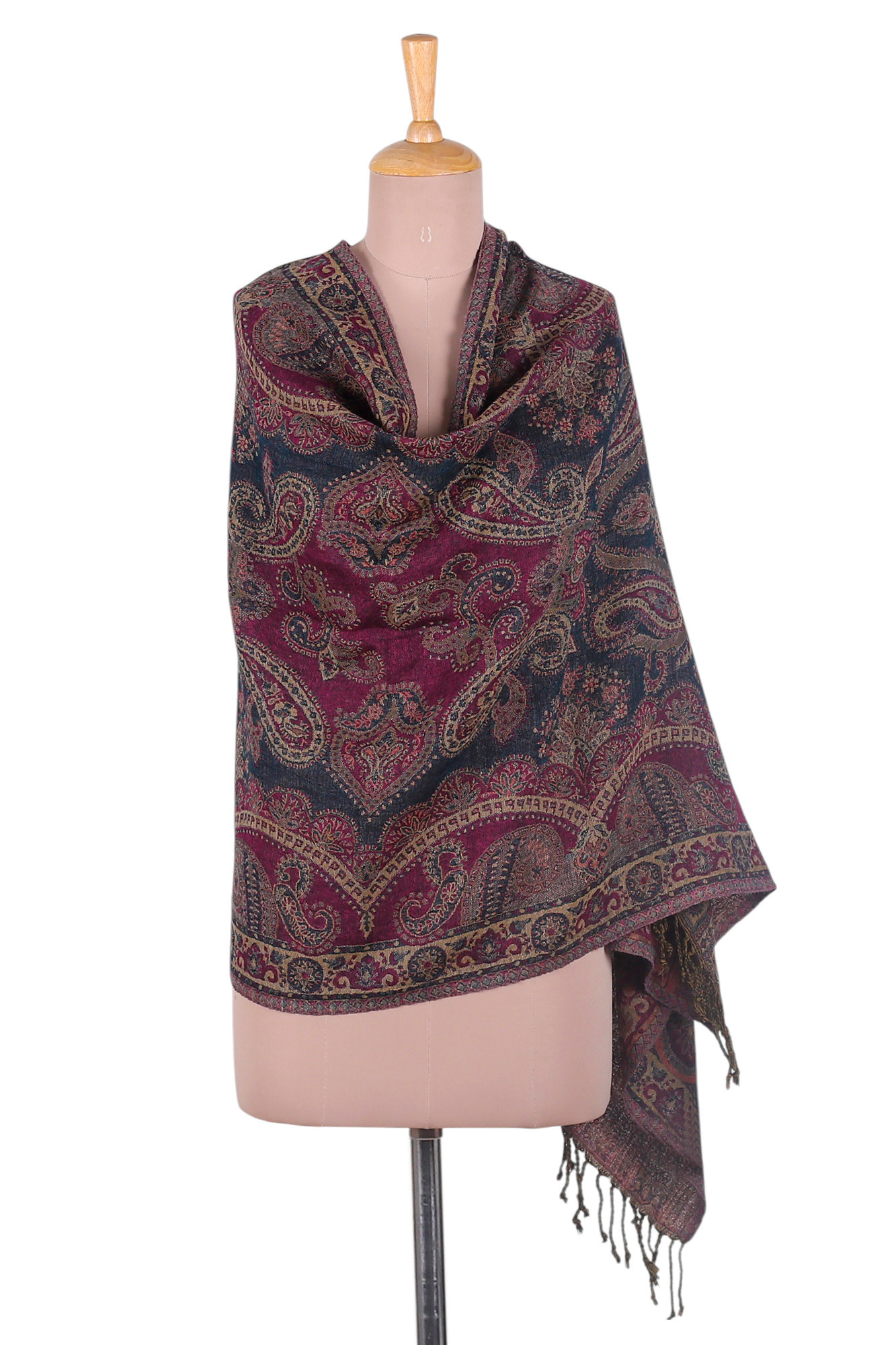 Reversible Jamawar Wool Shawl with Peacock and Paisley Theme, 'Timeless Luxury'