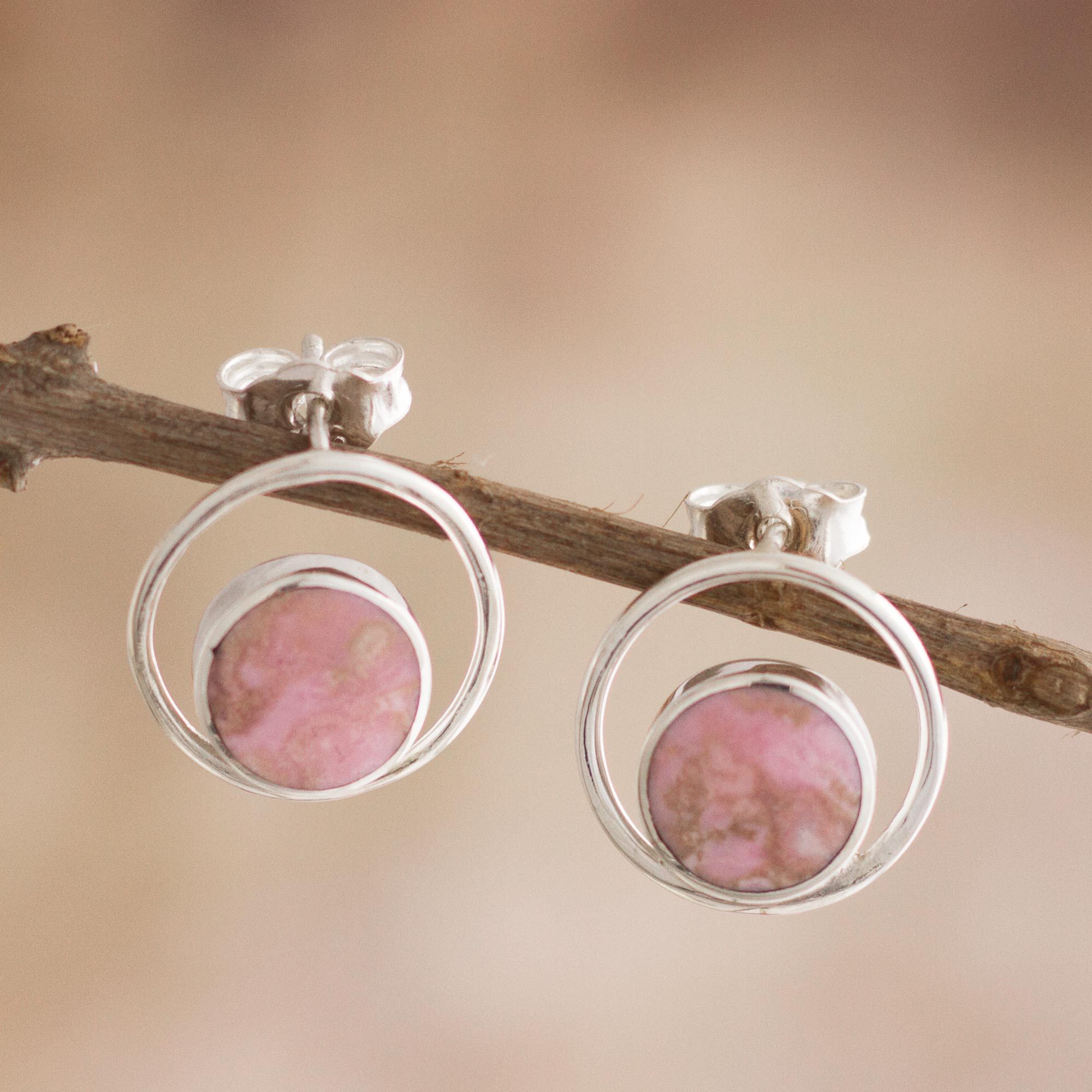 Rhodonite and Sterling Silver Drop Earrings from Peru, 'In the Loop'