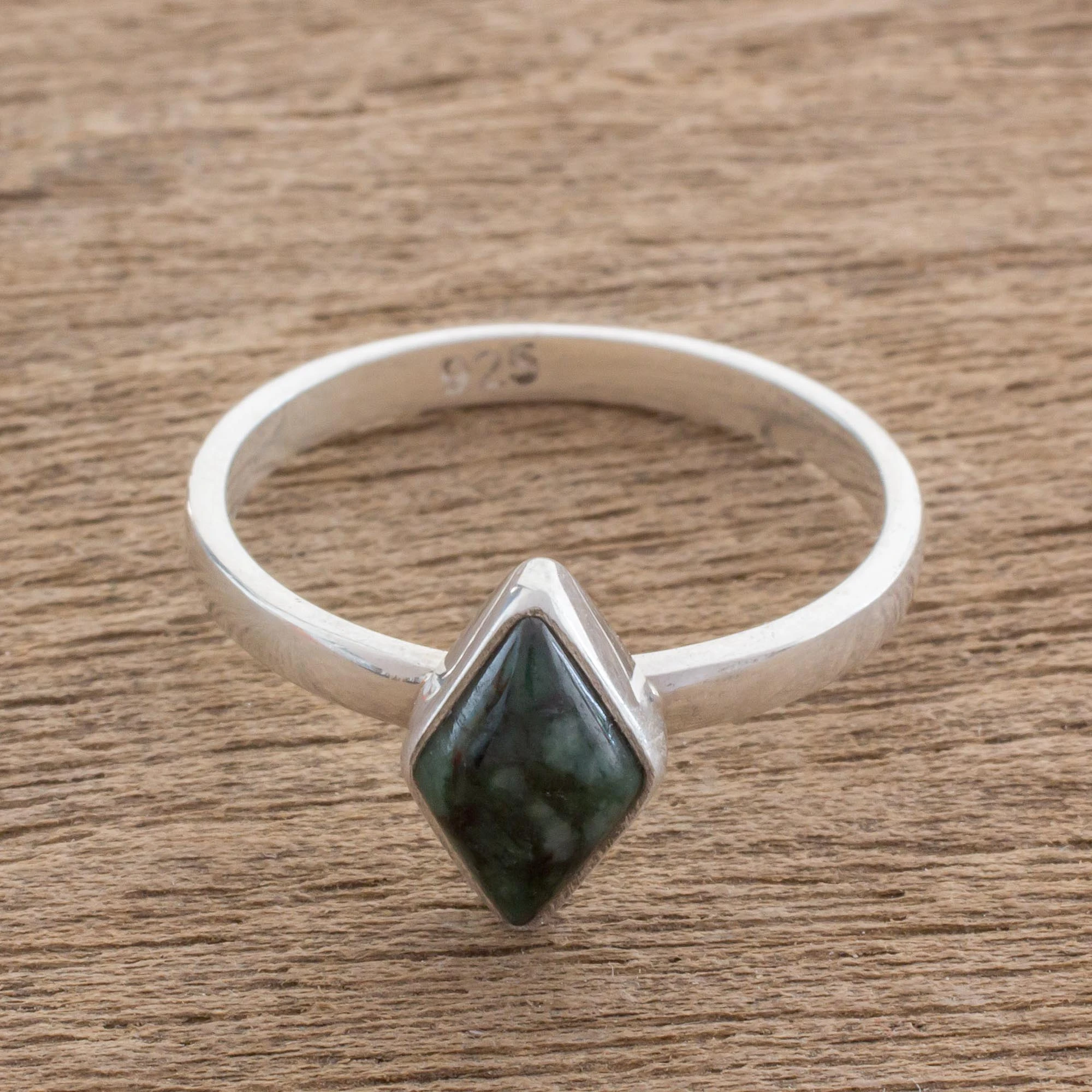 Rhombus Dark Green Jade Single Stone Ring from Guatemala, 'Love Rhombus in Dark Green'