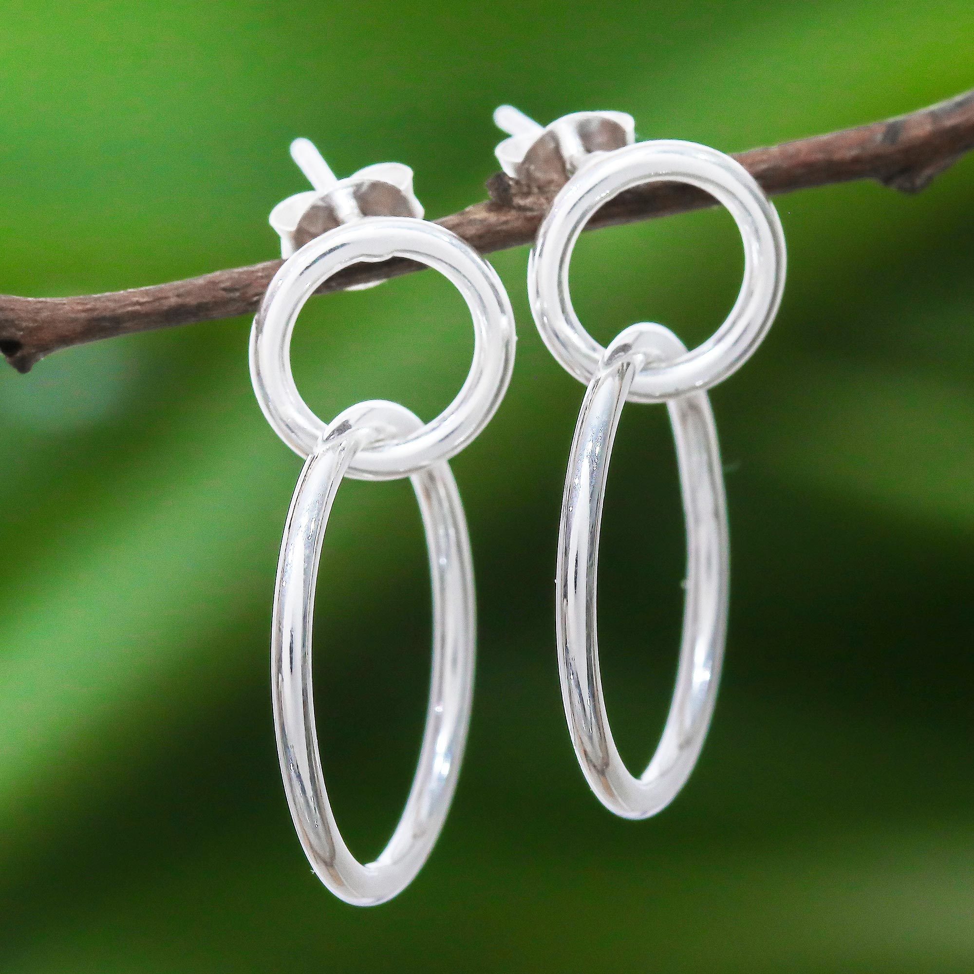 Crafted from sterling silver with a gleaming high-polish finish, two pairs of rings form this pair of dangle earrings from Thailand. Lalana designs a wonderful accessory to complement any wardrobe.