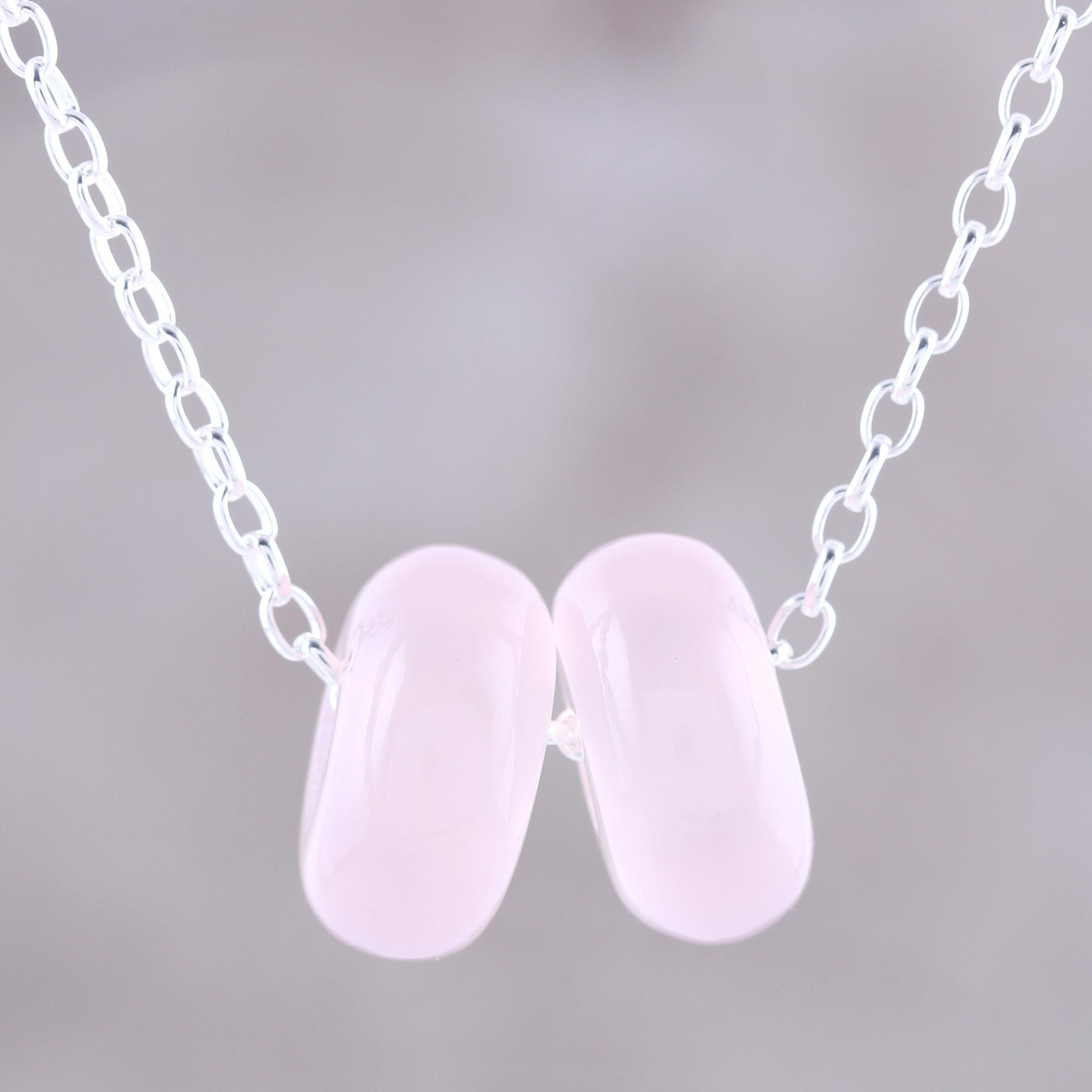 Rose Quartz Double Disc and Sterling Silver Pendant Necklace, 'Delightful Duet'