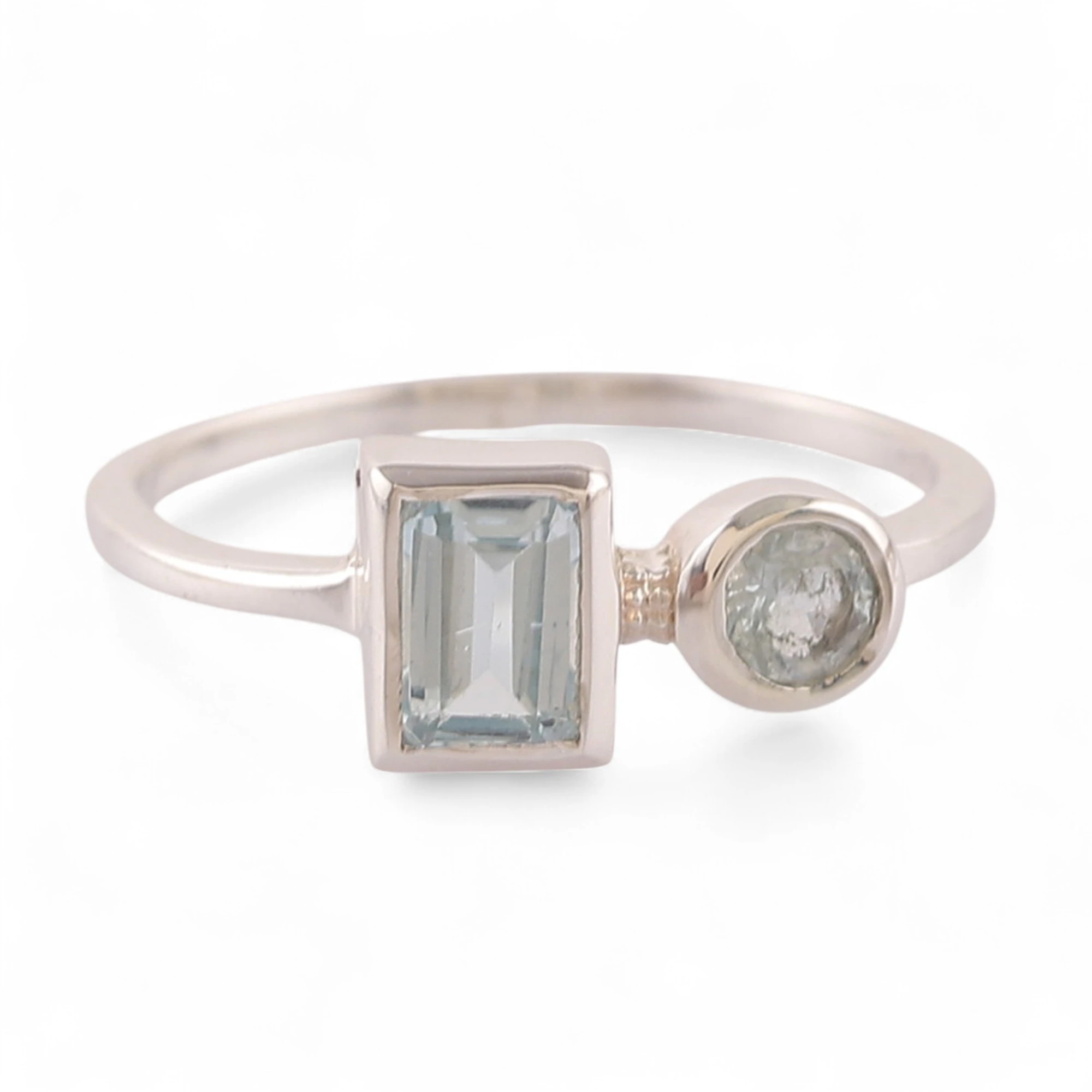Round and Rectangular Blue Topaz Silver Cocktail Ring, 'Celestial Duet'