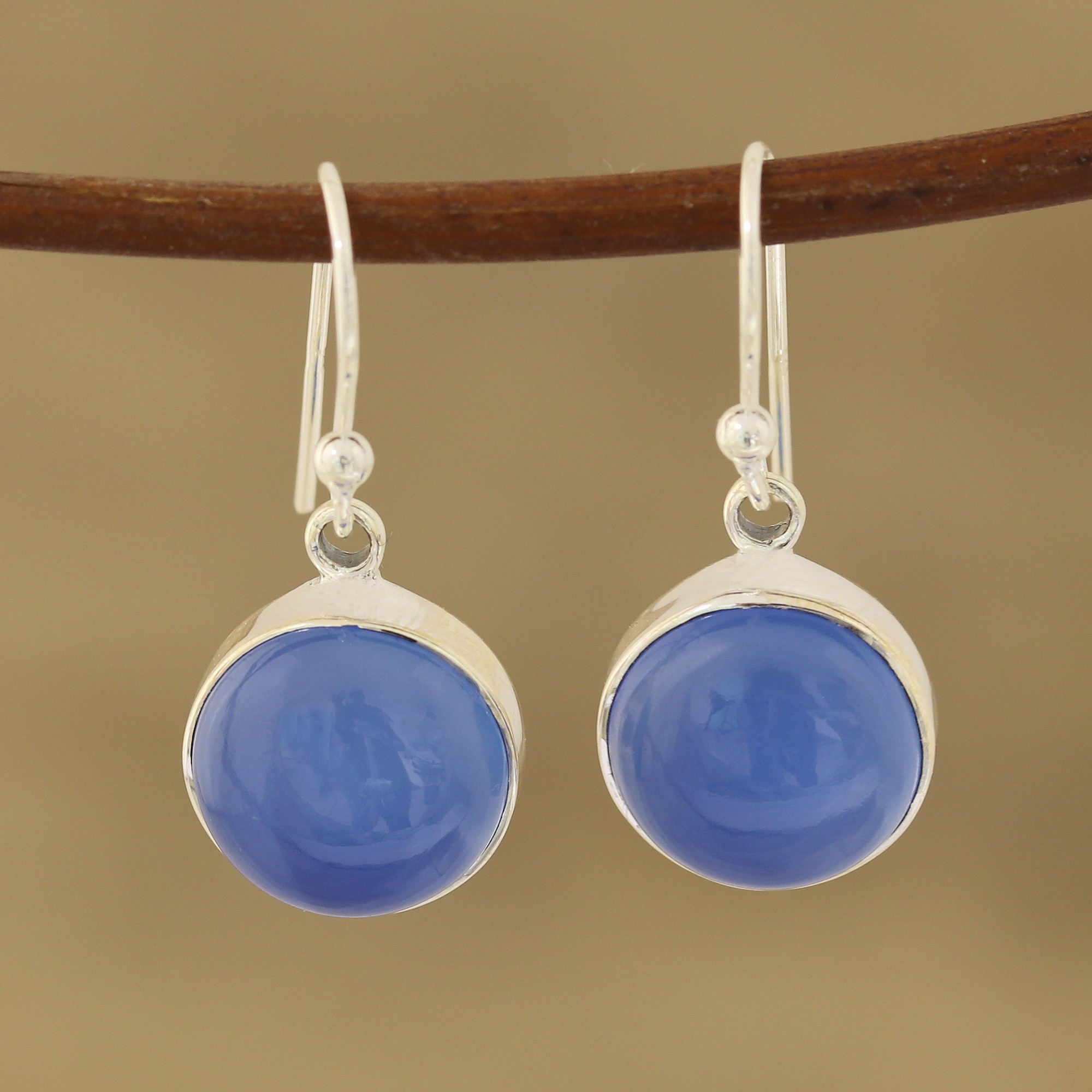 Round Blue Chalcedony Dangle Earrings Crafted in India, 'Round Sky'