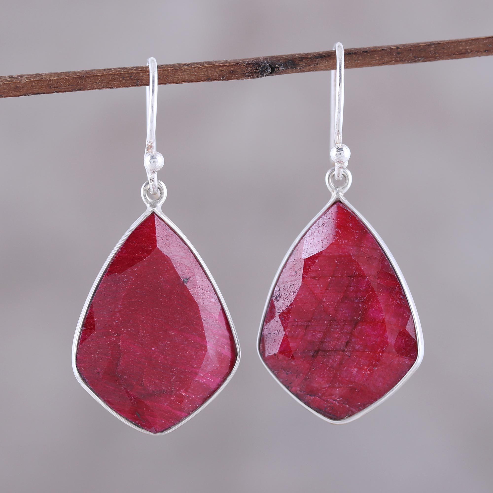 Ruby and Sterling Silver Dangle Earrings from India, 'Passionate Muse'