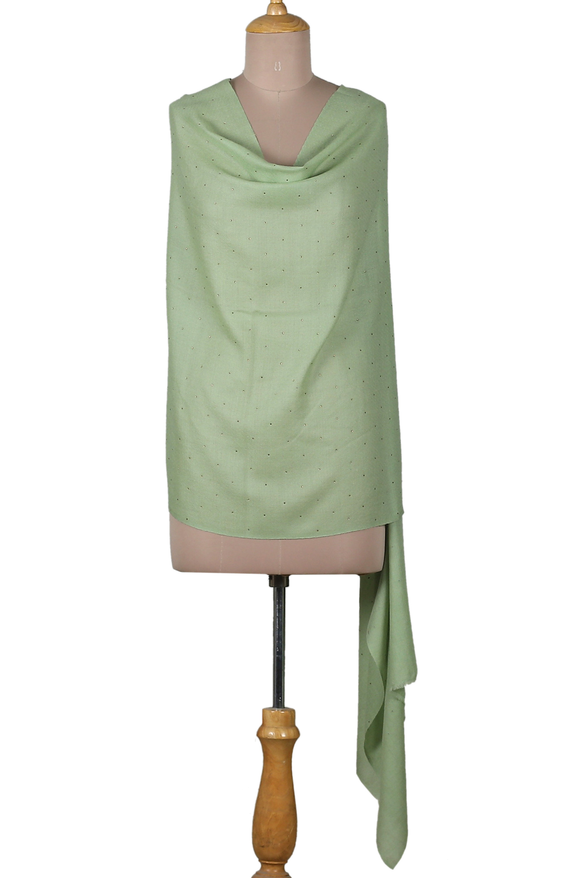 Sage Green Wool and Silk Swarovski Crystal Beaded Shawl, 'Sage Sparkling'