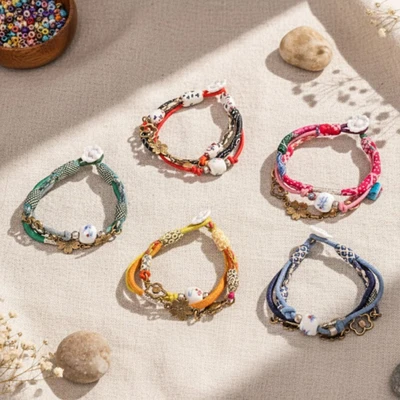 "I use various types of materials, such as kimonos (a traditional Japanese garment), cotton fabric from northeast Thailand, printed cotton from Chiang Mai or Africa, glass beads, brass beads, gemstones, etc. I think delicacy and design are my specialties.