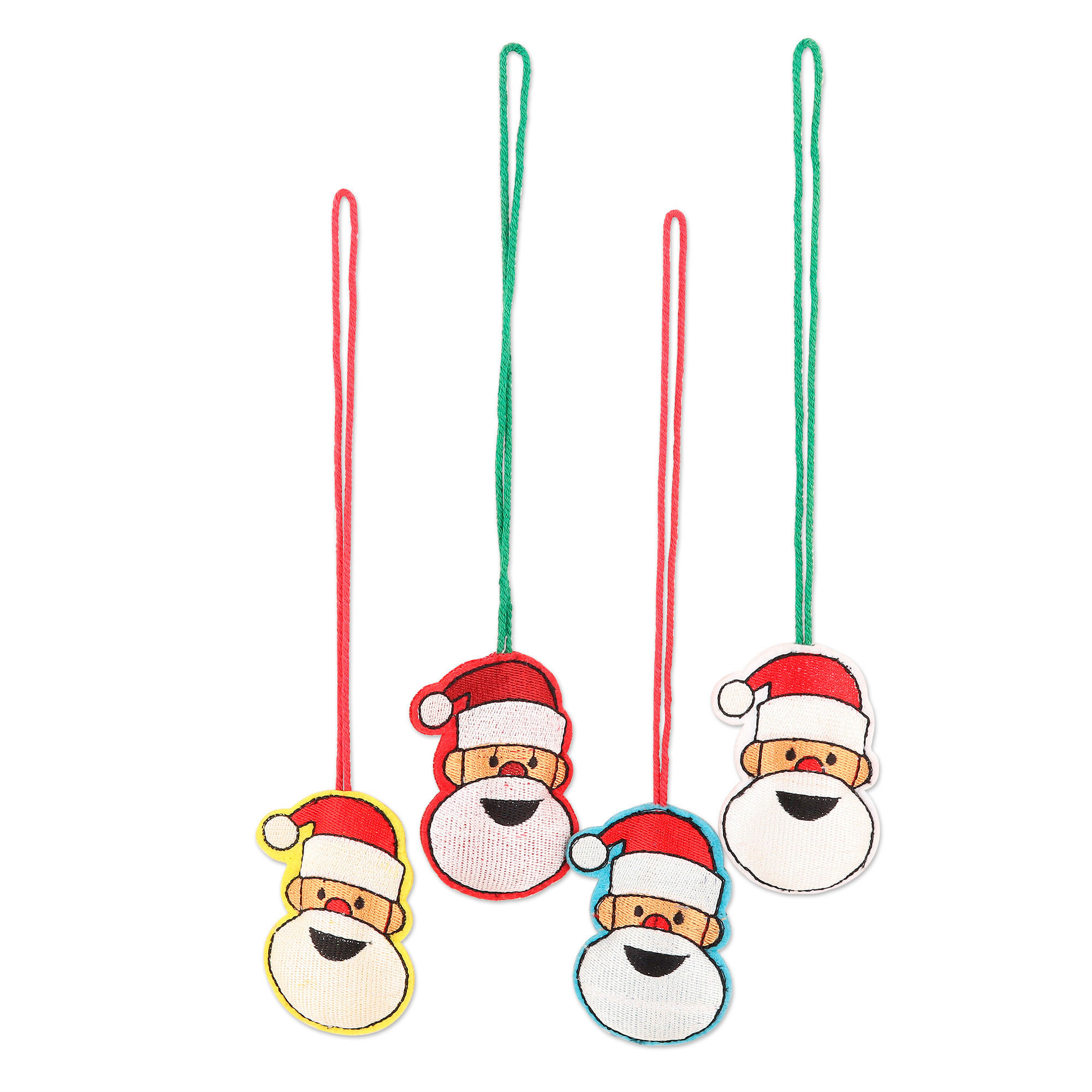 Santa Claus-Themed 4-Piece Embroidered Felt Ornament Set, 'Smiling Claus'