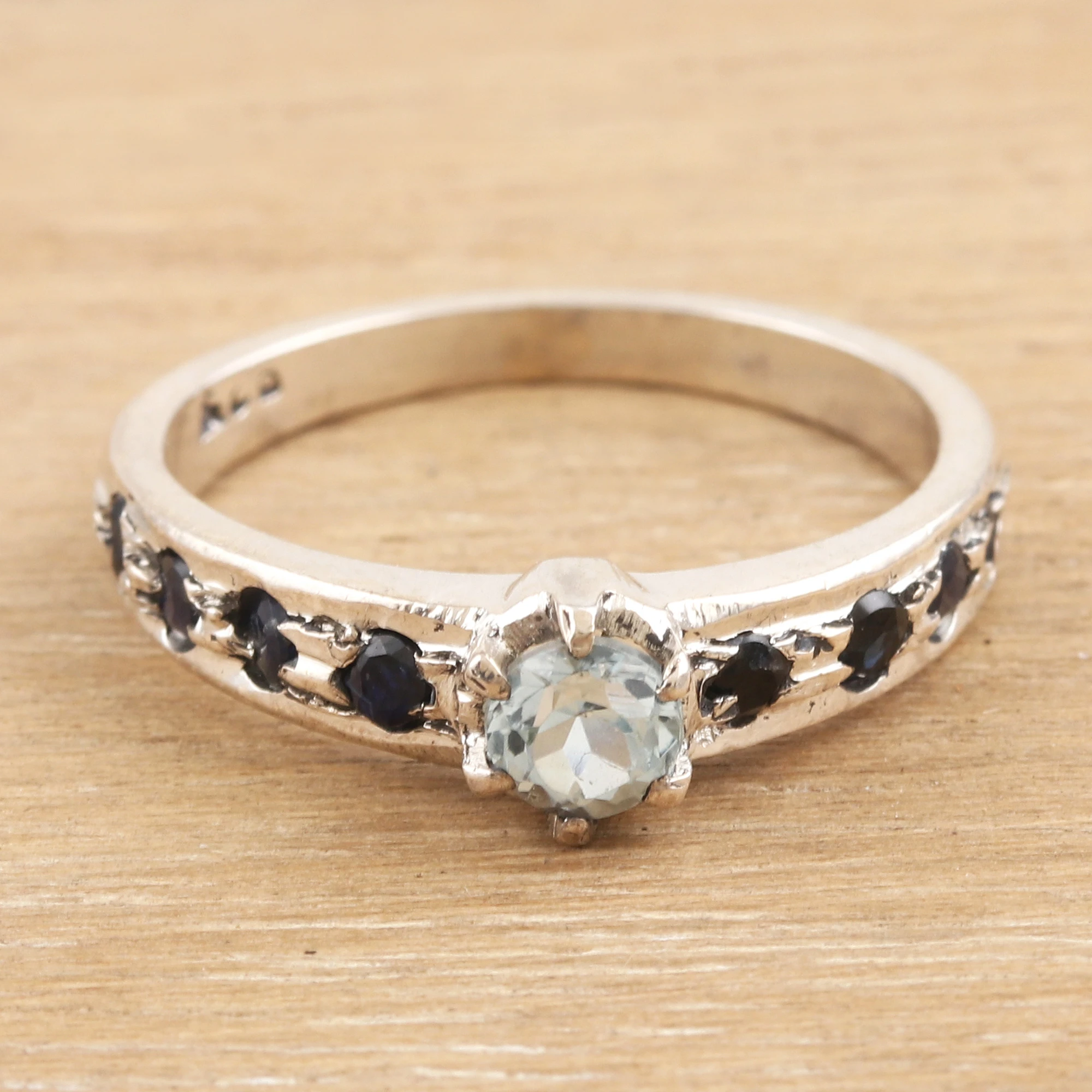 Sapphire and Blue Topaz Solitaire Ring, 'Sea Sparkles'
