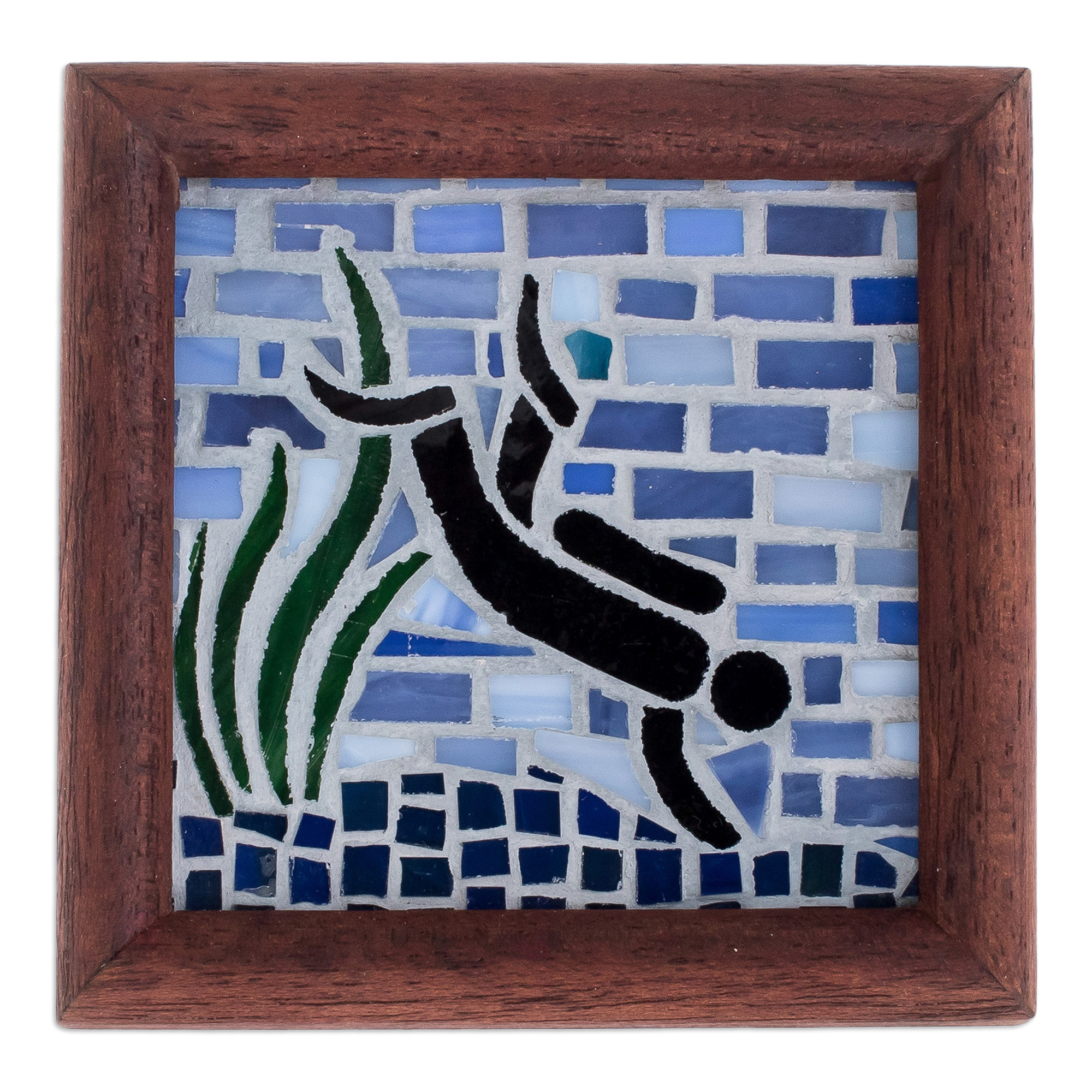 The mysteries of the ocean are many to discover, inviting you to dive deep down into those enigmatic and blue waters. Costa Rica's Herrera Perlaza Family Artisans draw inspiration from the sea's mystic side to create this enchanting piece, allowing you to create a space with marine enchantment. Made from sturdy teak wood, this wall accent features a precious glass mosaic artwork made in honor of scuba divers and their fearless spirit, combining blue, green and black hues in one sublime composition.