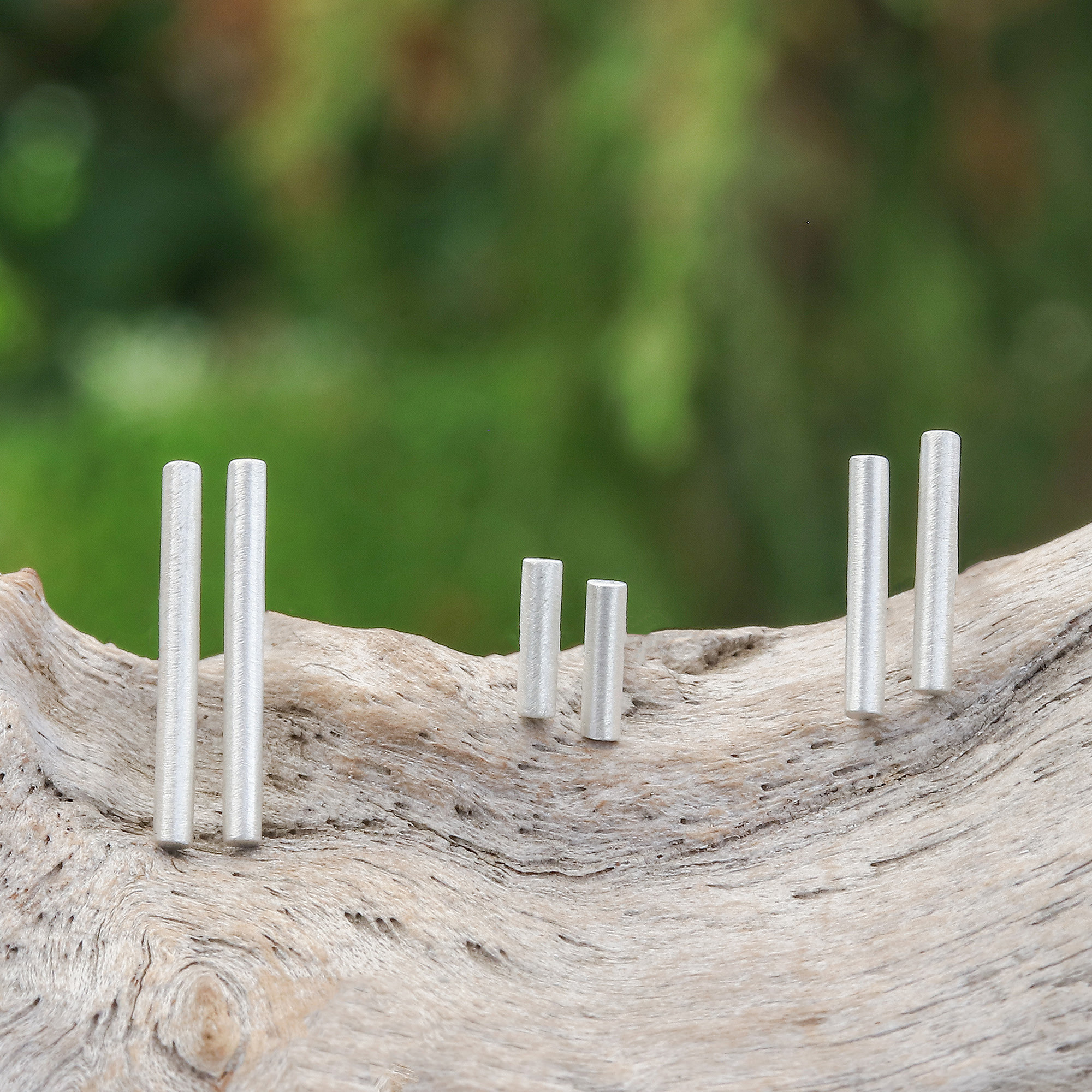 Set of 3 Brushed-Satin Finished Minimalist Earrings, 'Daily Minimalist'