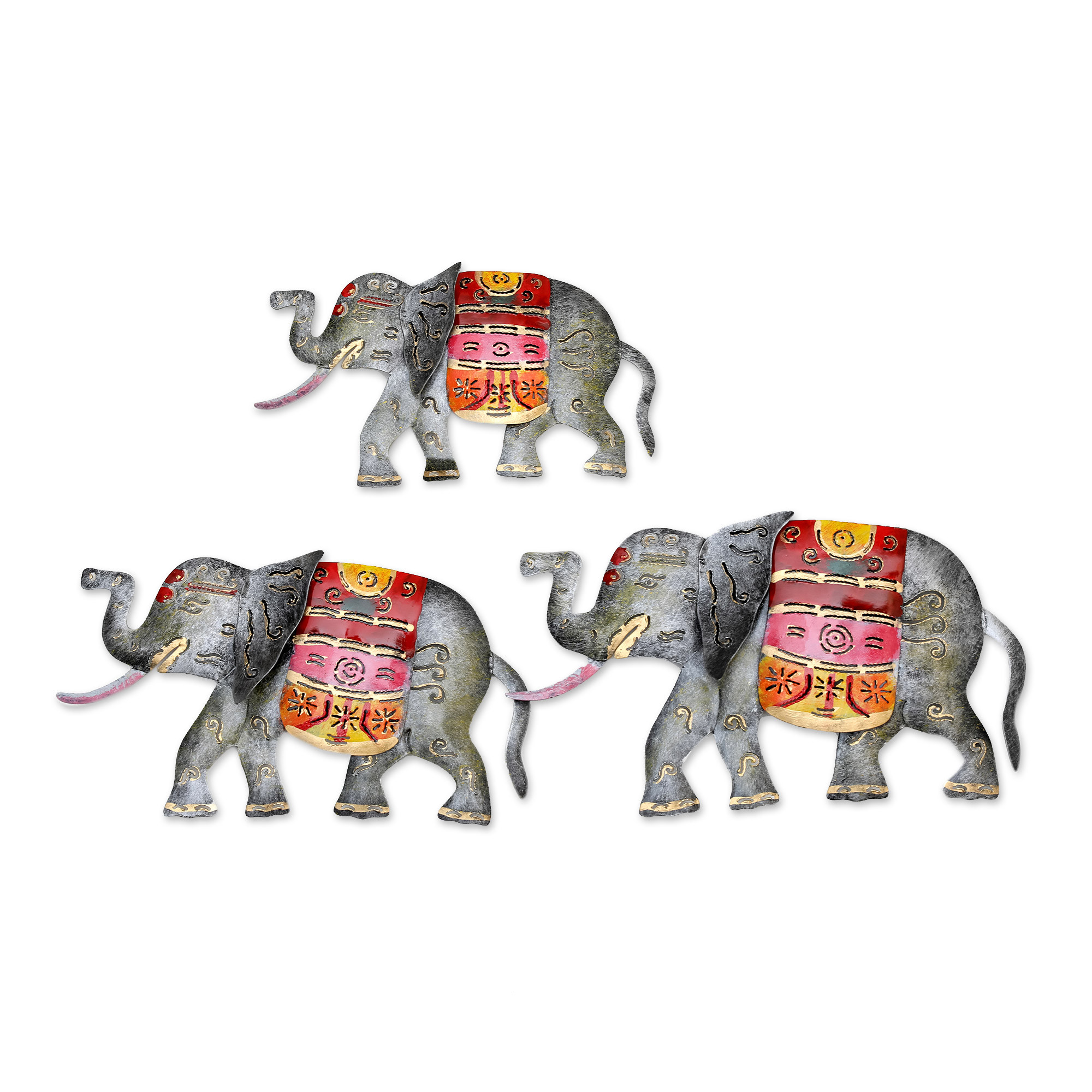 Set of 3 Handcrafted Traditional Iron Wall Art Elephants, 'Sulawesi Elephants'