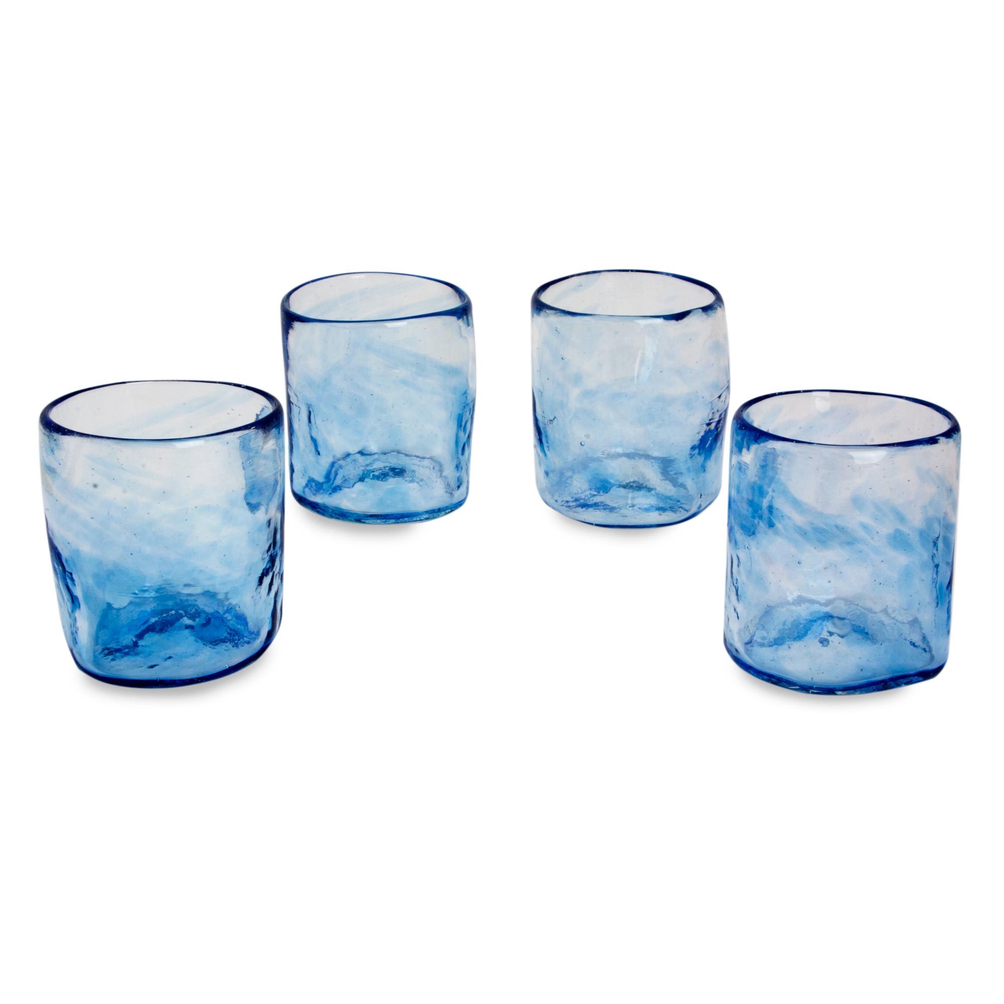 Perfect for your favorite drink, these rocks glasses with an irregular shape are colored by a wispy blue mist. Each glass is crafted with blown glass techniques. "We only use alternative forms of energy - such as used oil from restaurant kitchens - to fire up the kiln, and our process is 100% handcrafted. Our designs are inspired by traditional Mexican pieces which we develop with a contemporary accent," Salime Cruces tells us.