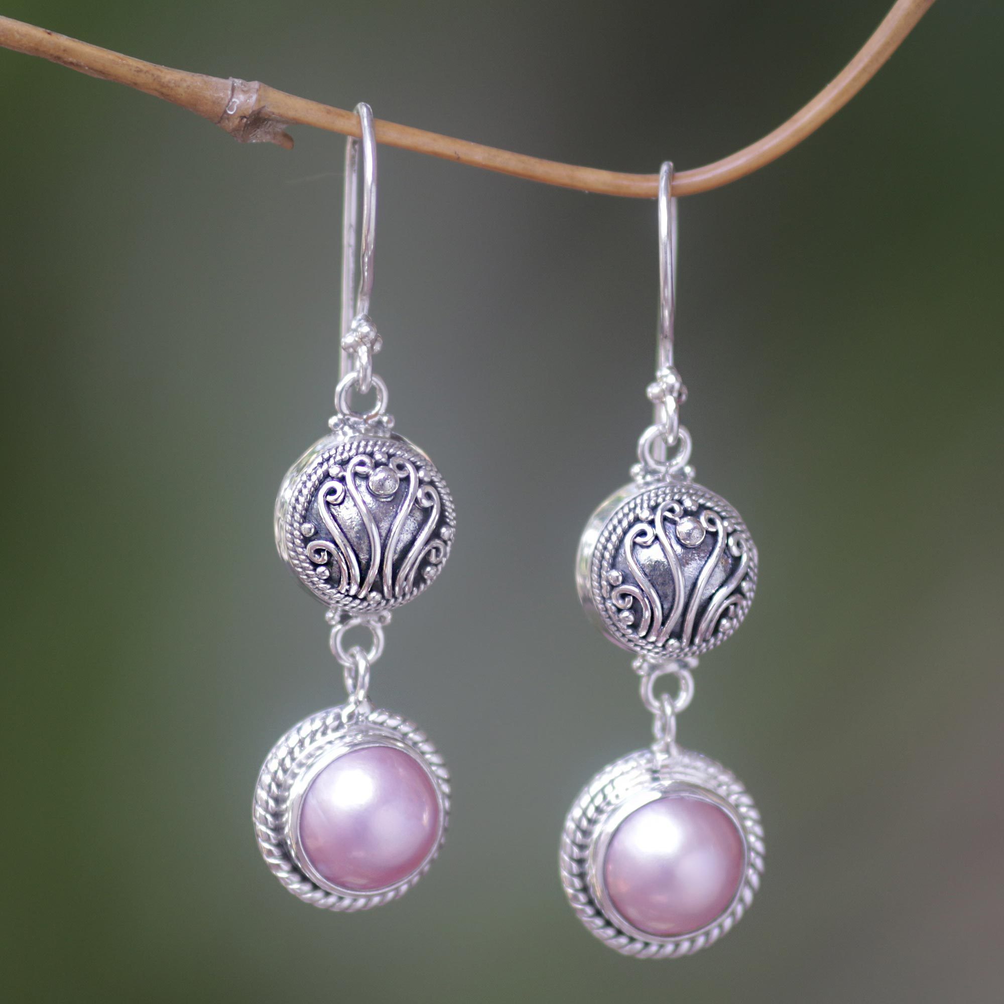 Lustrous pearls emit an almost heavenly rose glow. By Buana from Indonesia, these earrings are artistically handcrafted from .925 sterling silver. Their intricate design and luxurious pearls make these earrings a truly memorable set of wearable artwork.