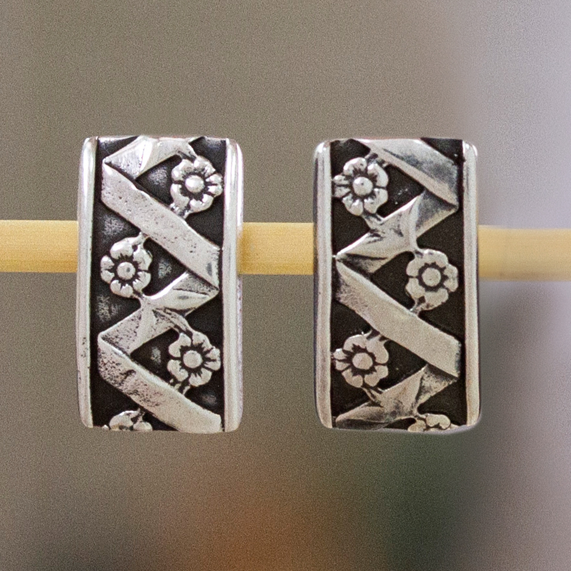 Silver button earrings, 'Blossoming Beauty'