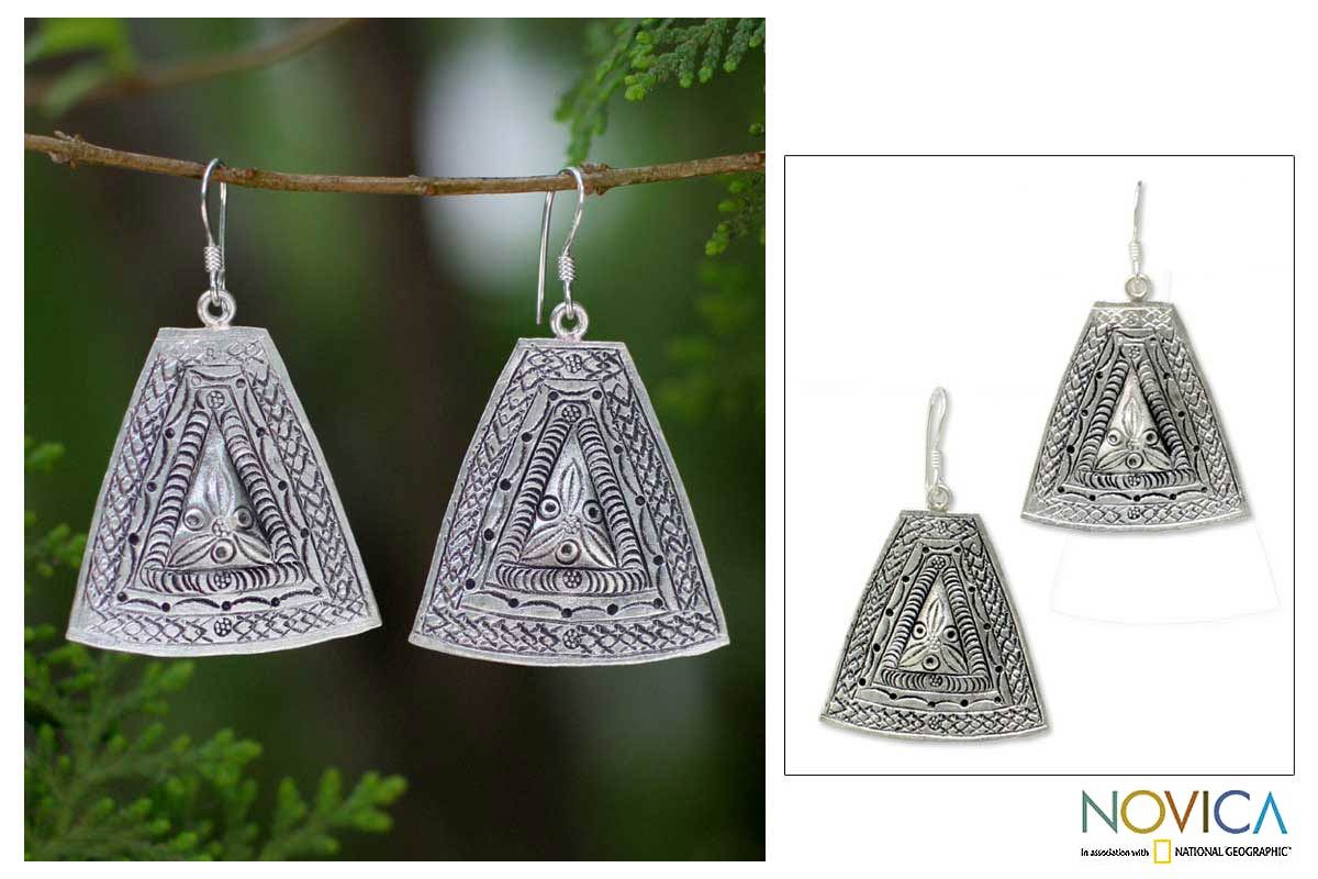 Silver Hill Tribe Earrings, 'Temple of Flowers'