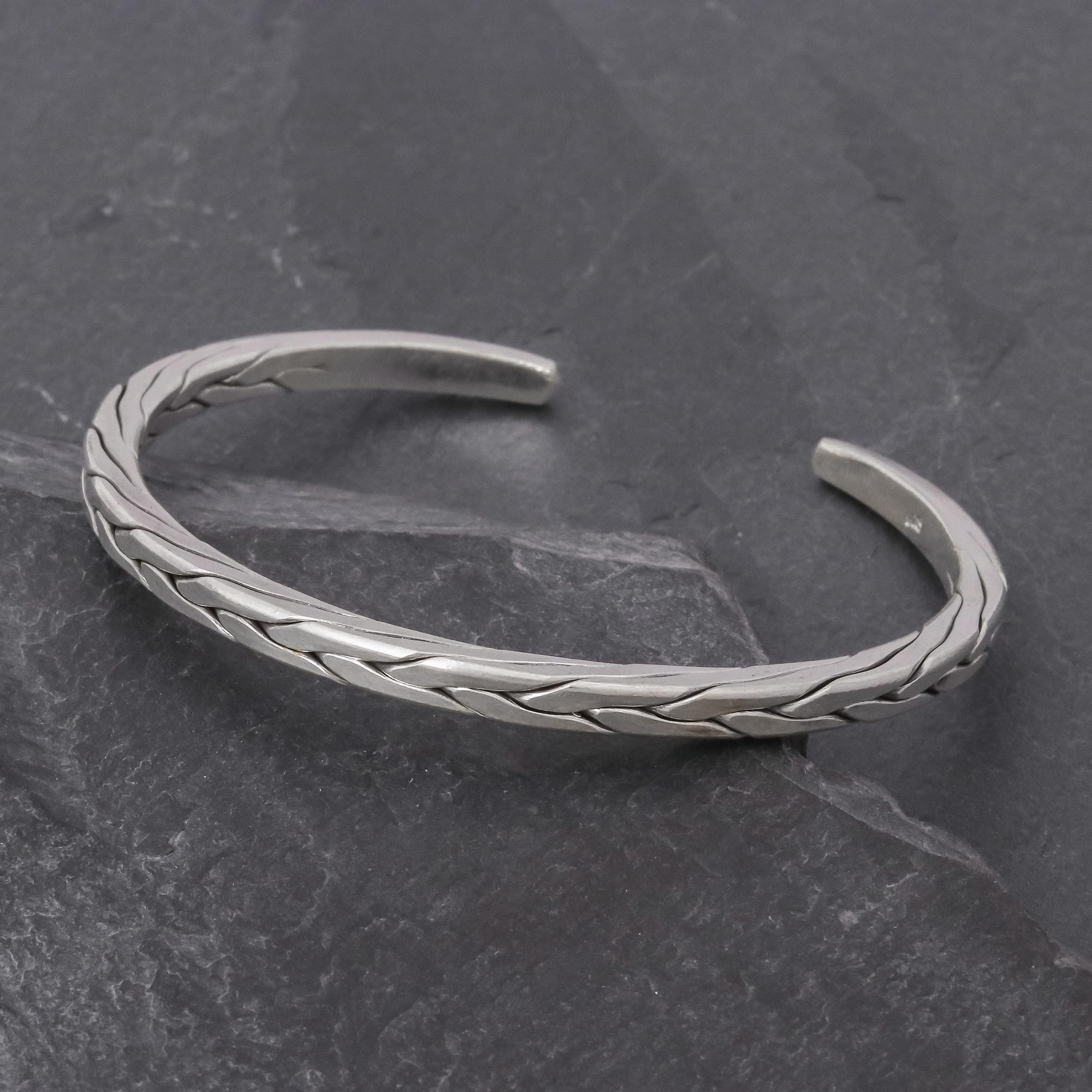 Sleek Braided Sterling Silver Cuff Bracelet, 'Mountain Walk'