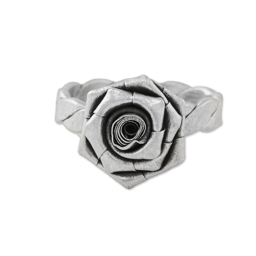 Small Hill Tribe Floral Sterling Silver Ring from Thailand, 'Petite Chic Rose'