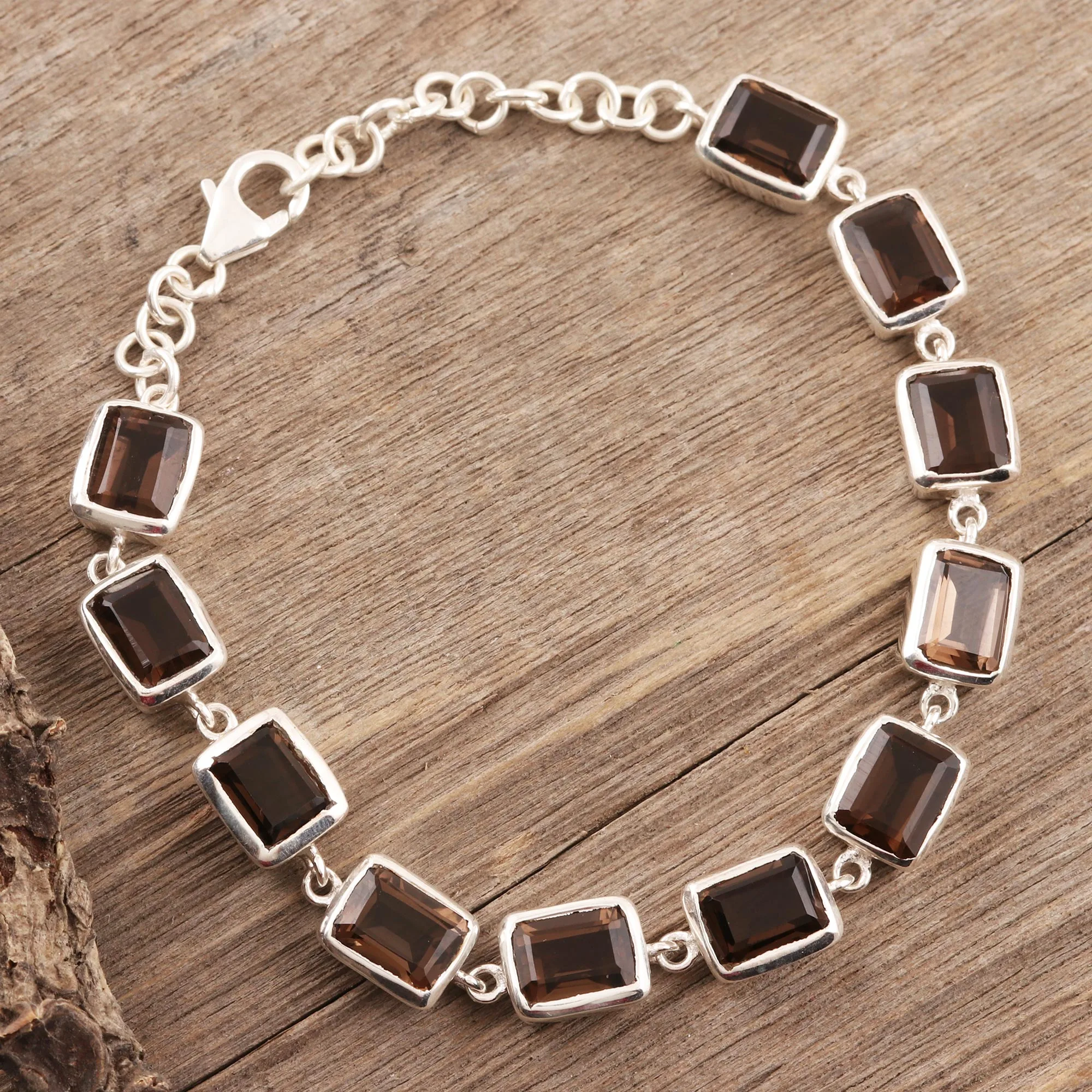 Smoky Quartz Link Bracelet from India, 'Dark Rectangles'