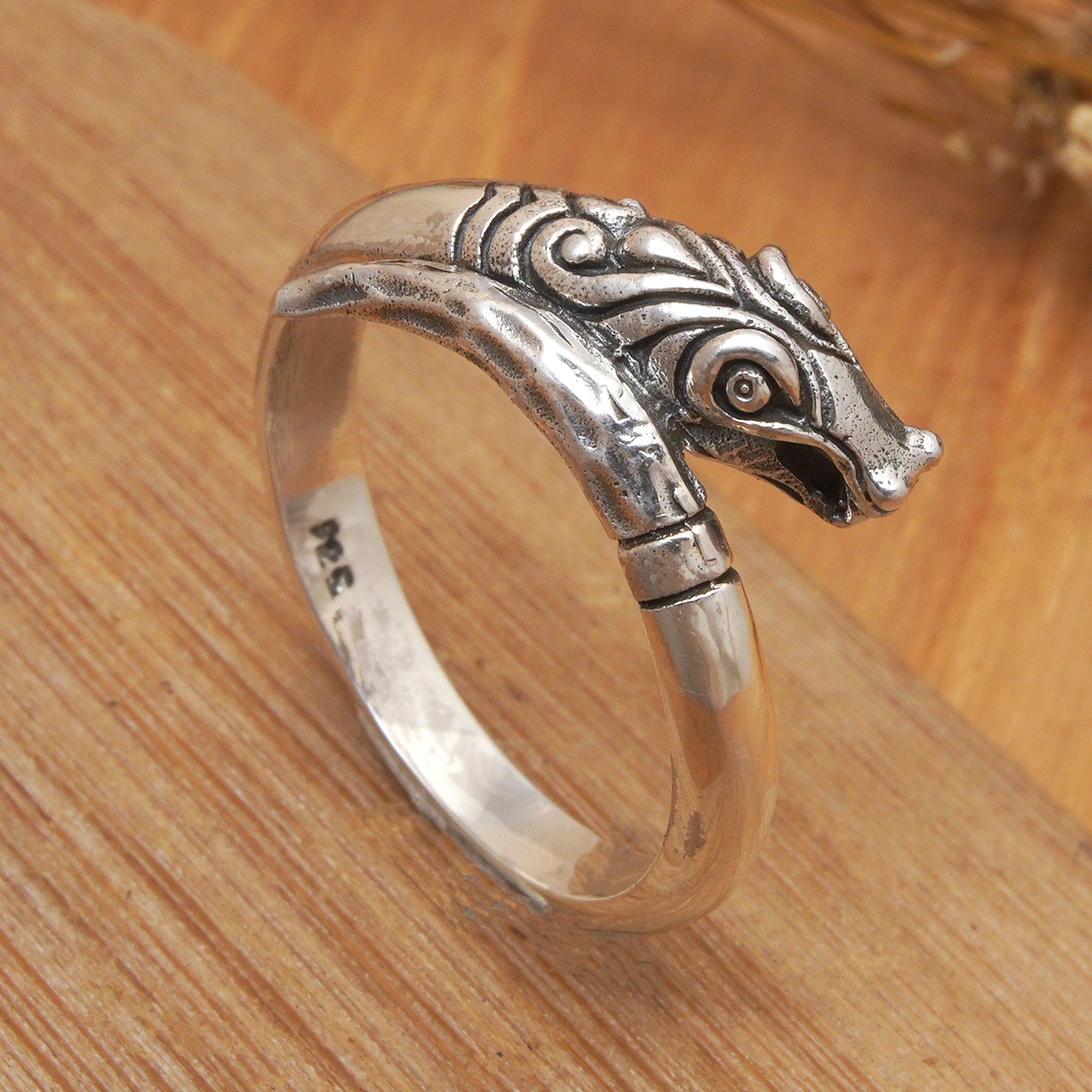 Snake-Themed Sterling Silver Band Ring Handcrafted in Bali, 'Serpentine Cunning'