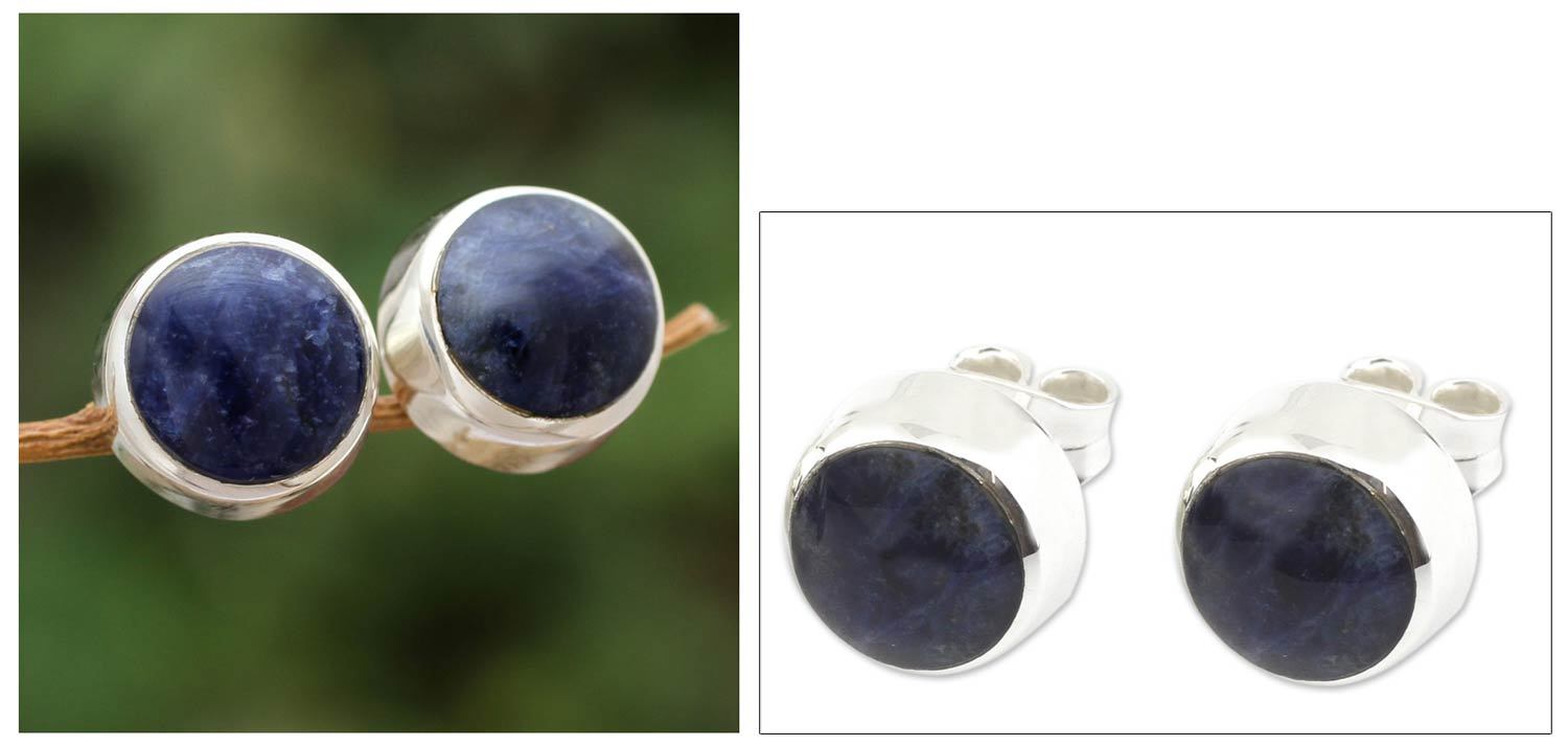 By Carlos González, these earrings are regal in their sleek minimalism. He sets deep blue sodalite in gleaming silver bezels.