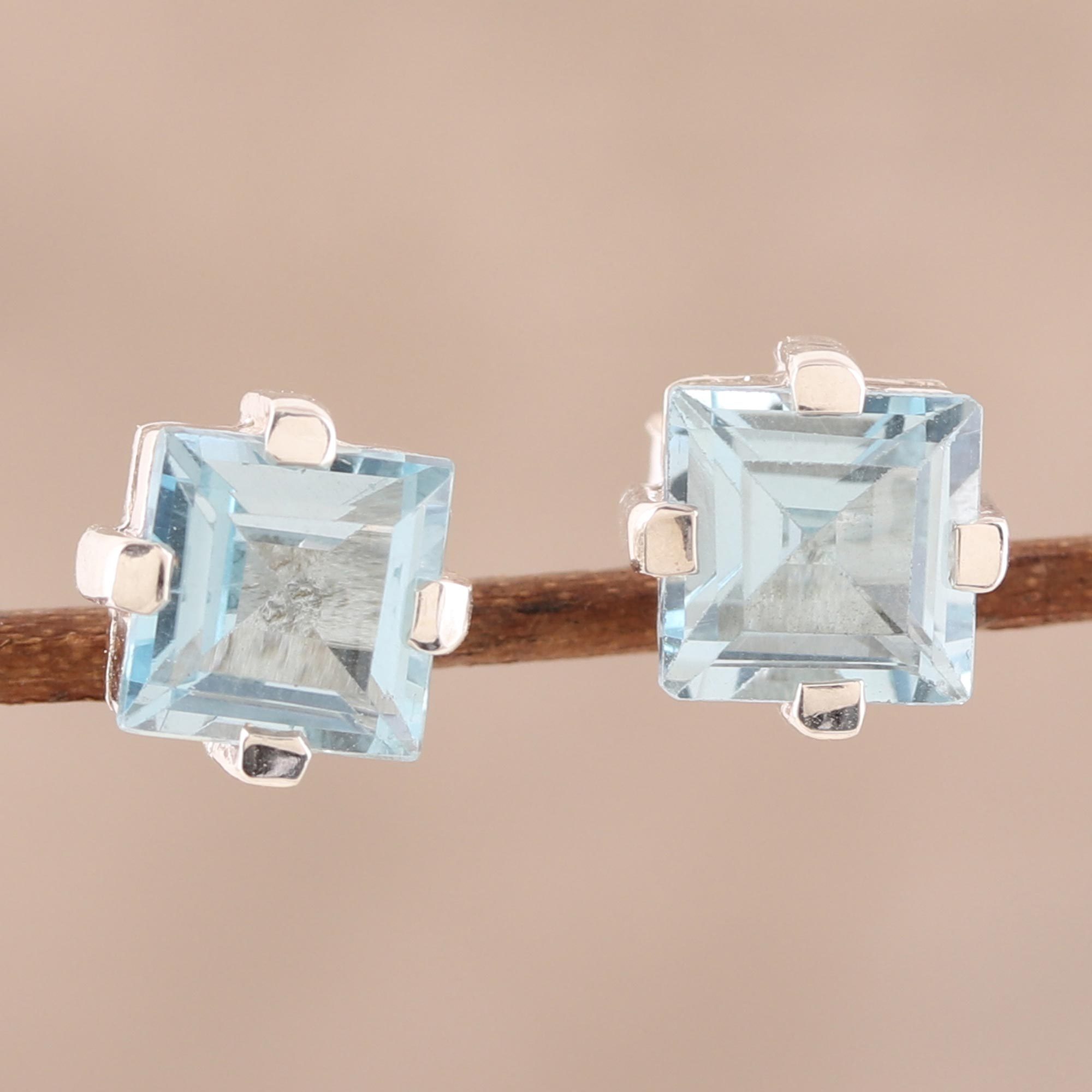 Sparkling Blue Topaz Stud Earrings from India, 'India Charm'