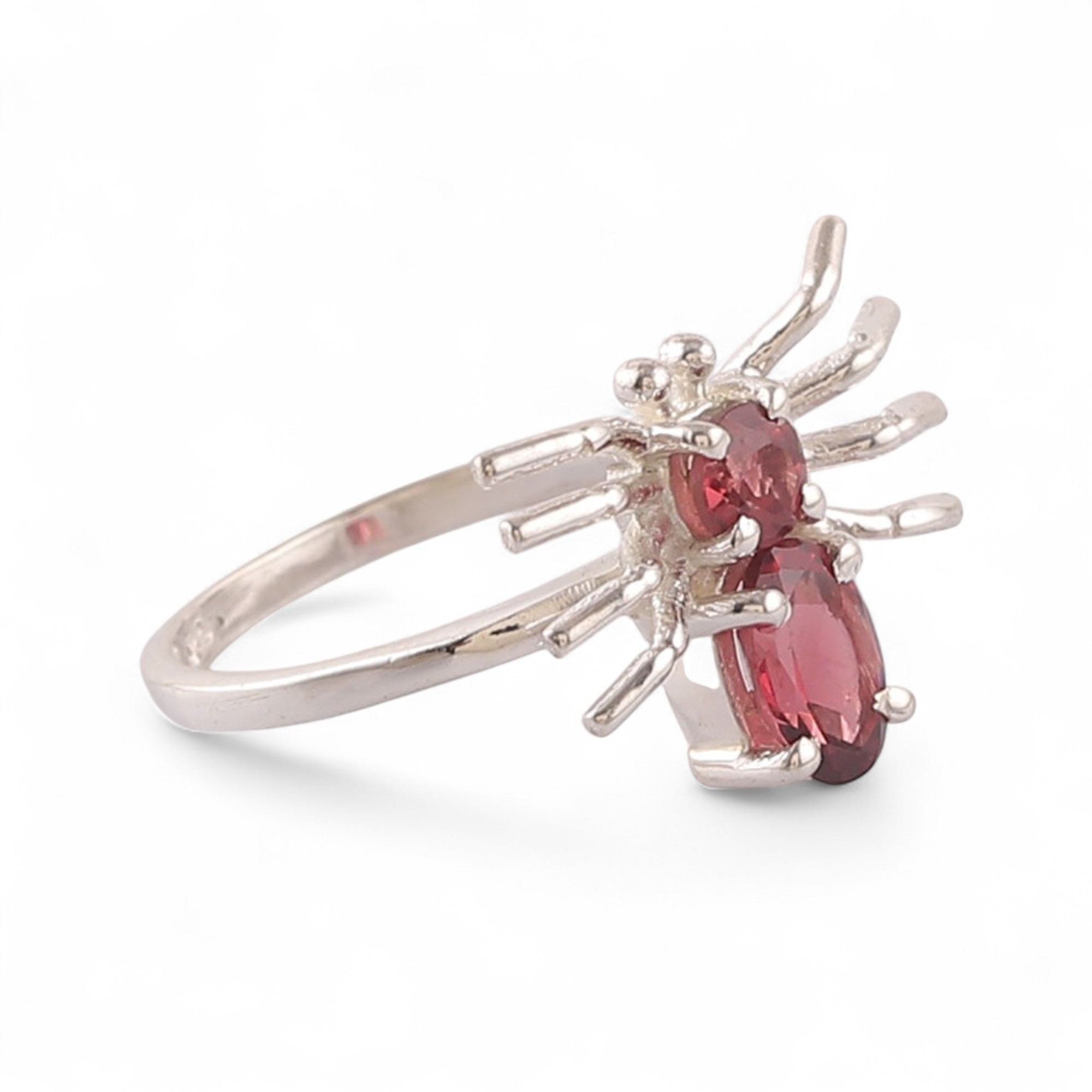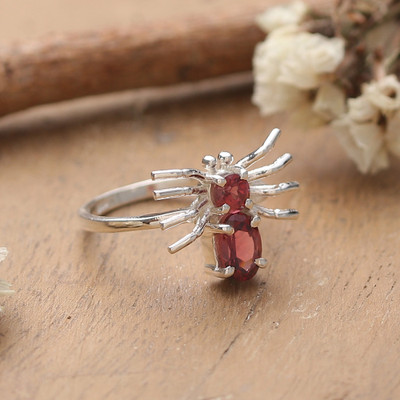 Spider-Shaped Garnet and Sterling Silver Cocktail Ring, 'Mystic Spider'