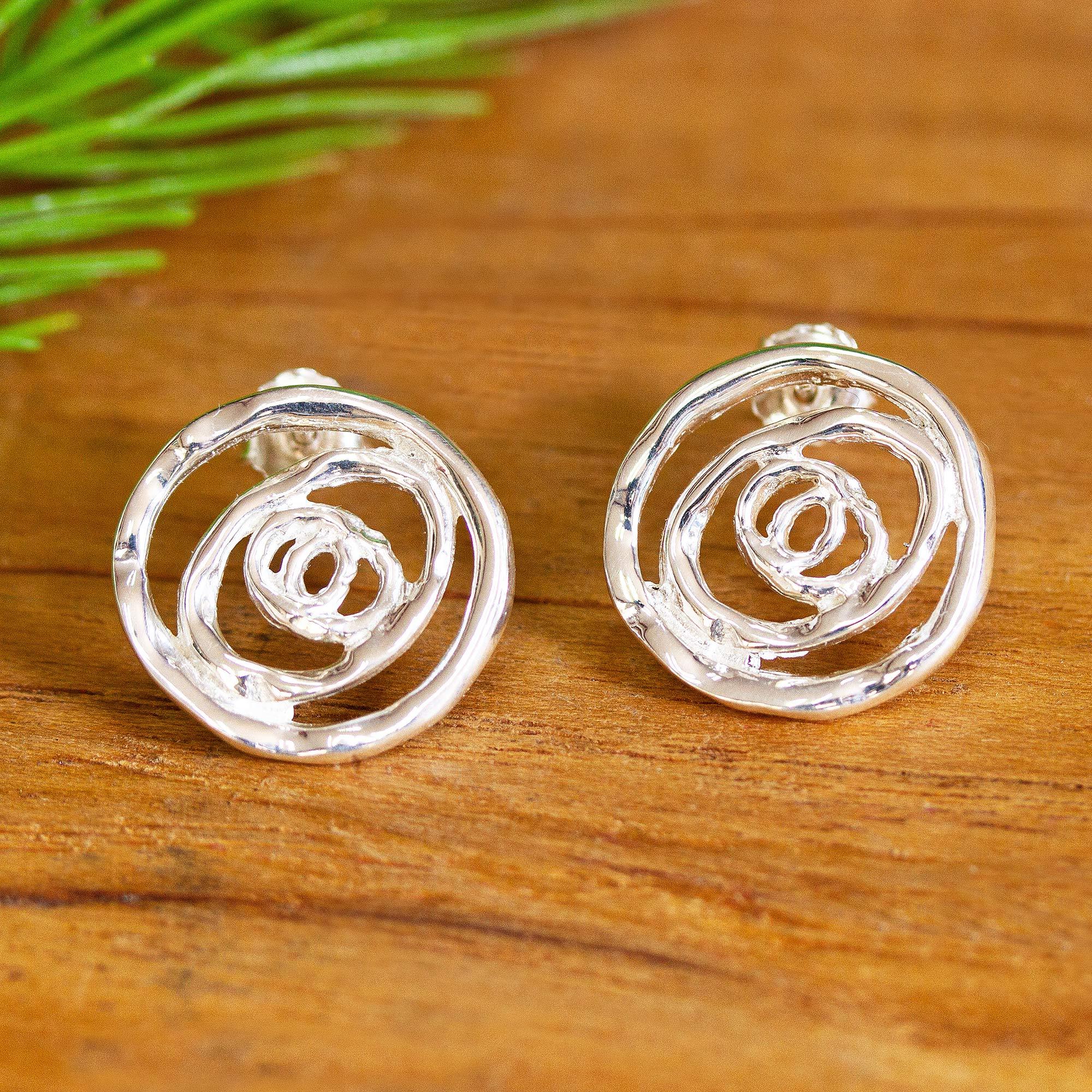 Working with Taxco sterling silver, artisan Oscar Figueroa Escorcia creates these lovely button earrings. The post earrings feature a snail-like spiral shape with a gleaming polished finish.