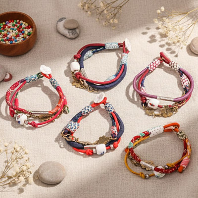 "I use various types of materials, such as kimonos (a traditional Japanese garment), cotton fabric from northeast Thailand, printed cotton from Chiang Mai or Africa, glass beads, brass beads, gemstones, etc. I think delicacy and design are my specialties.