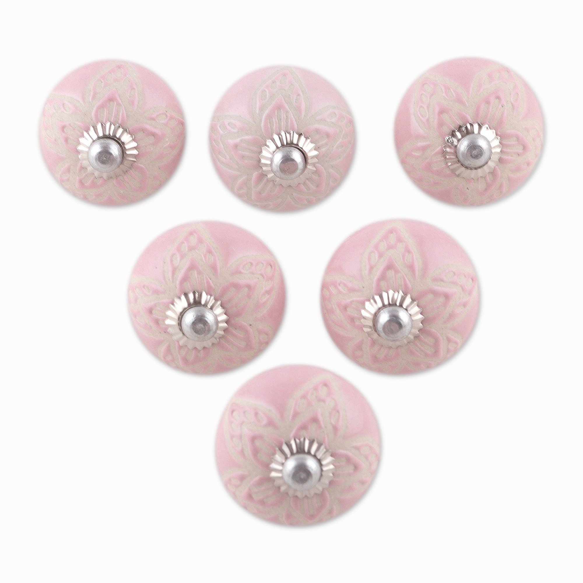Spring-Themed 6-Piece Glossy Pink and White Ceramic Knob Set, 'Pink Blossom'