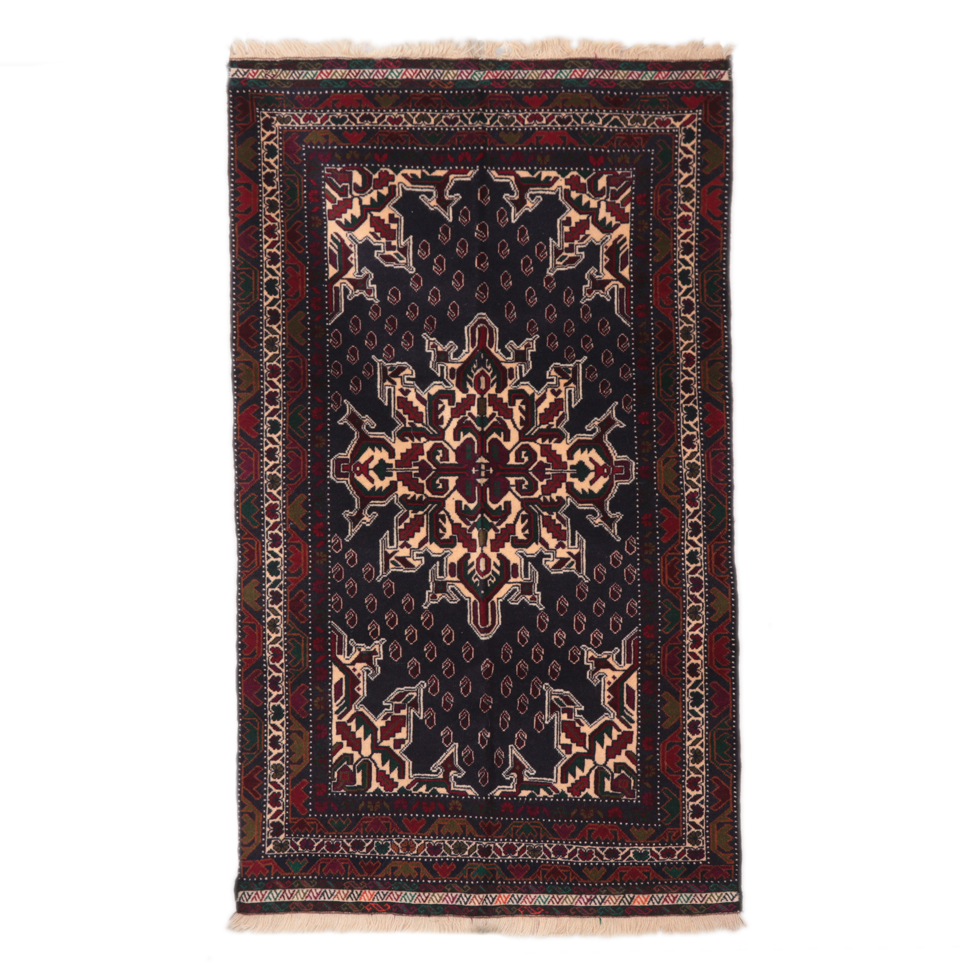 Artisan Saqib Khan of India lets the bloom of luxury thrive in this handwoven area rug, inspired by ancient traditions. Made of wool yarns, the piece presents a spring-inspired pattern, where geometric motifs dance around flowers. Crimson, cream and dark blue hues merge together, whereas fringes add a refined touch.