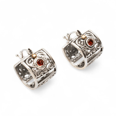 Botanical whispers from ancient Bali dance in these sterling silver hoops. Designed by Dewi Putera, the earrings let natural garnet complete each floral detail with a crimson hue of seduction, while 18k gold plating crowns the pair with luxurious warmth.