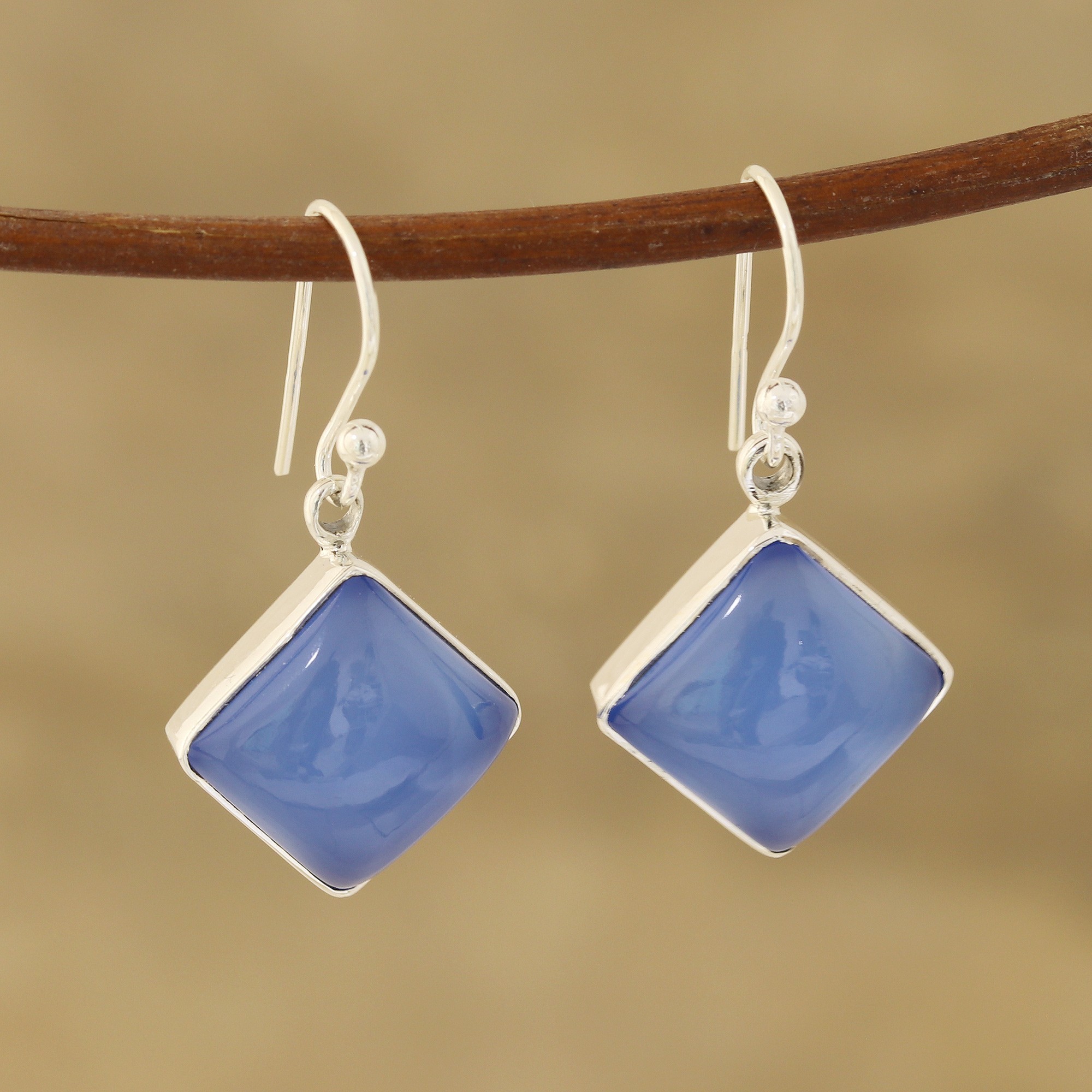 Square Blue Chalcedony Dangle Earrings Crafted in India, 'Sky Squares'