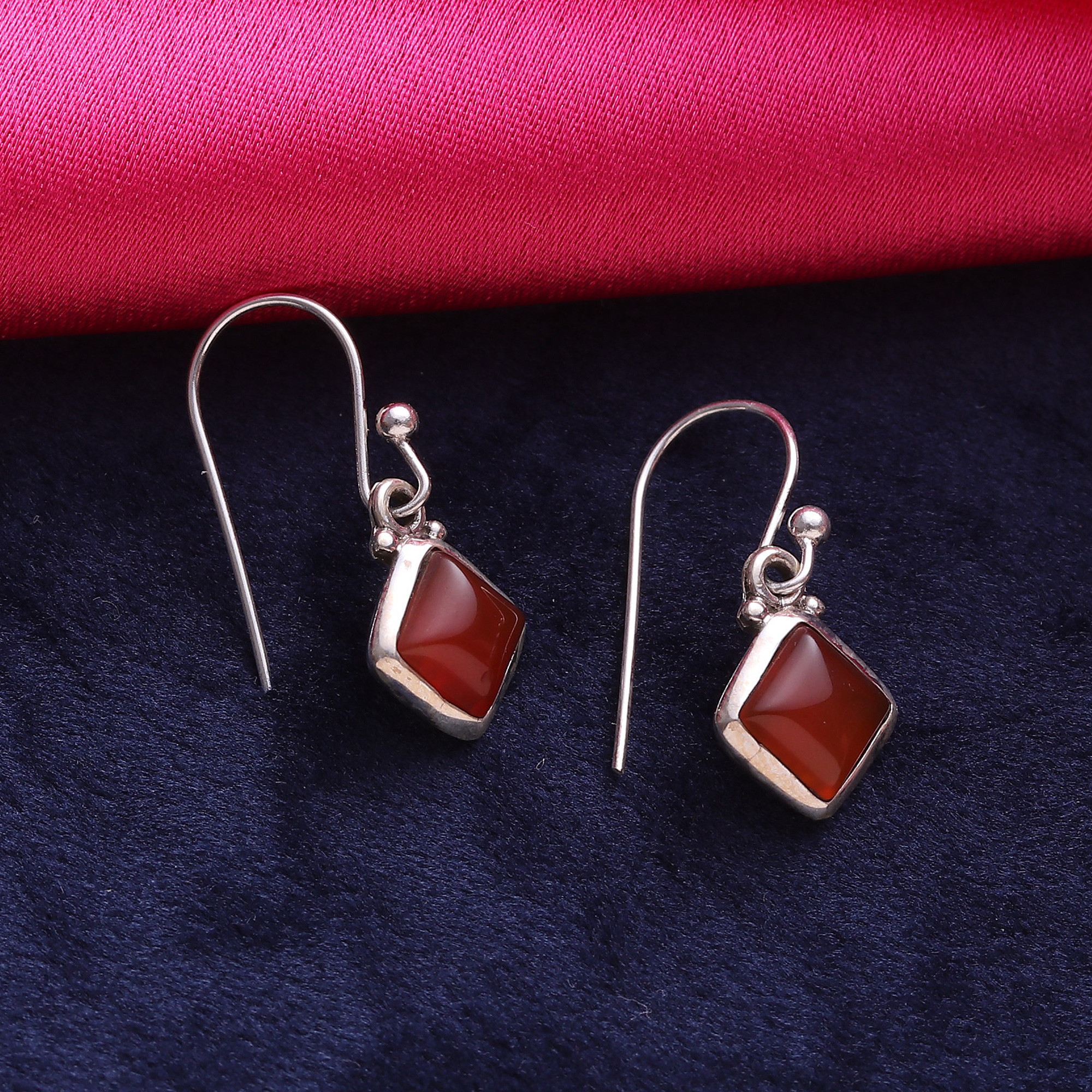 Square Carnelian Cabochon Dangle Earrings, 'Happy Kites'