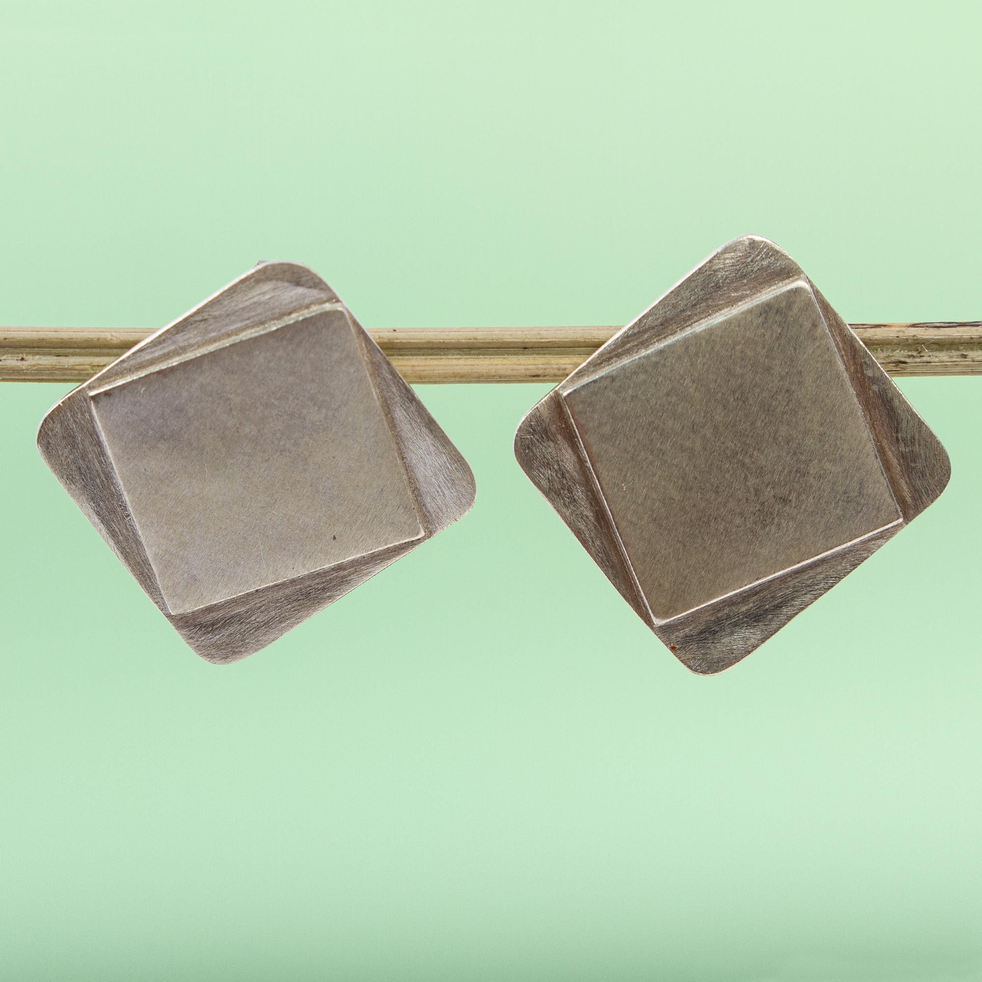 These contemporary drop earrings are the original design of Mexico's Mariana Llanes. She crafts the square earrings by hand from sterling silver with a matte finish.