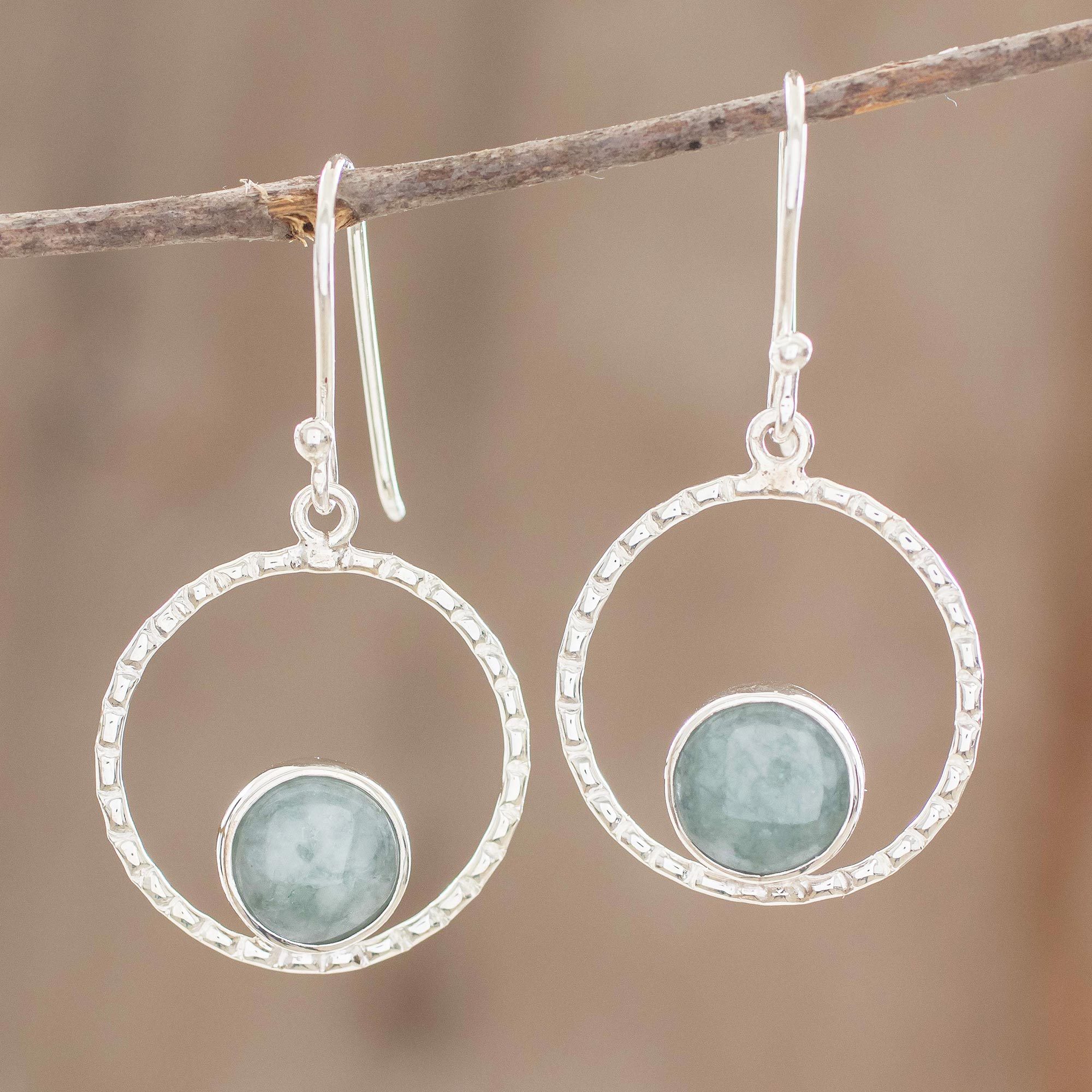 Sterling Silver and Apple Green Jade Earrings from Guatemala, 'Full Moon in Apple Green'