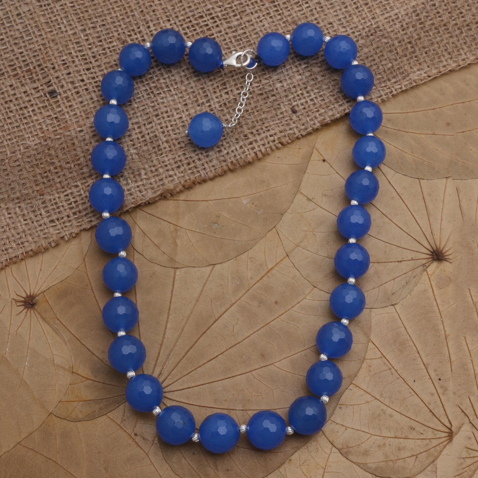 Sterling Silver and Blue Agate Beaded Necklace, 'Evening Cocktail in Blue'